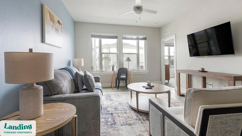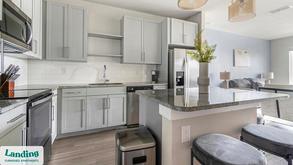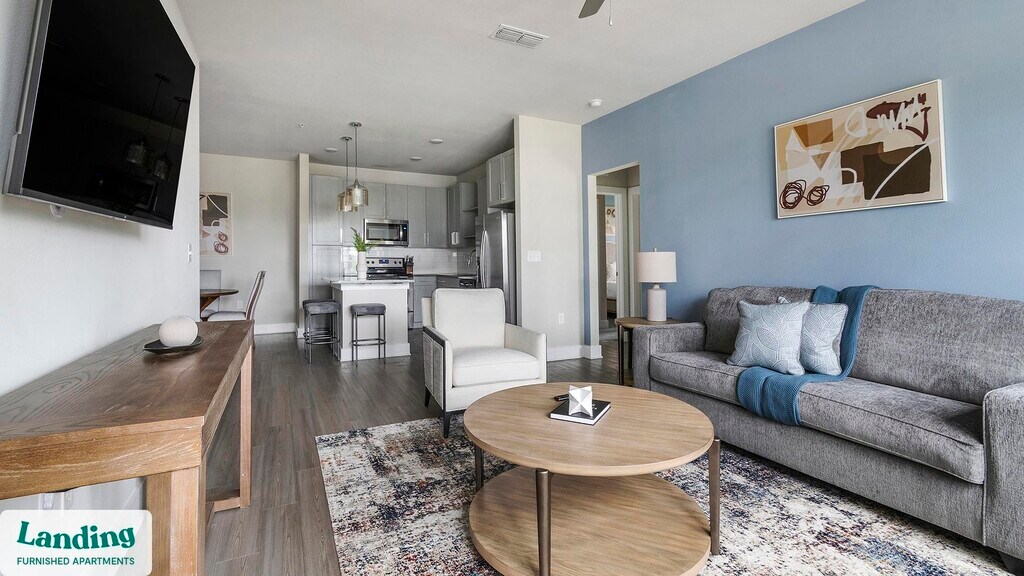 Landing offers flexible lease terms from weeks to months. Please always visit our website or contact us for the latest pricing & availability. Stay longer, save more: 6-Month Minimum base rent: starts at $2649/mo 12-Month Minimum base rent: starts at $2301/mo Landing offers flexible leases across a network of over 35,000 fully-furnished apartments throughout 375+ cities so you can rent on your terms, practically anywhere, and avoid the hassle of paying deposits or application fees. Visit to learn about all the benefits of a Landing membership, see our competitive up-to-date pricing, explore available apartments, take virtual tours, and make reservations online without jumping through traditional rental hoops. Landing's apartments at The Elysian are designed for comfortable, easy living, with the ability to stay as long as you like. Experience living with Landing Every apartment is outfitted with all the modern essentials including: custom-designed furnishings, a fully-equipped kitchen with deluxe stainless steel appliances, a gourmet coffee maker, premium linens, Smart TVs, and incredibly fast, reliable internet for working from home. When you live with Landing, you'll enjoy a hassle-free experience with the added benefit of 24/7 access to our dedicated member experience team. Some of the nitty-gritty: a background check and proof of income are required; we're completely smoke-free; bundled utility packages and pricing vary based on length of stay; pet-friendly options available; listed price reflects a 12-month minimum stay.