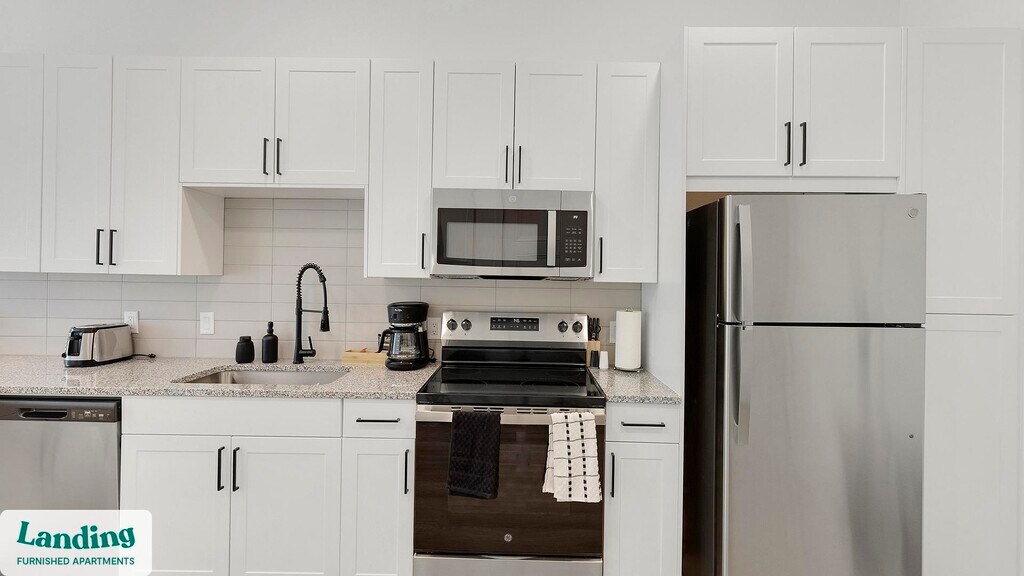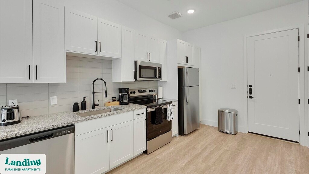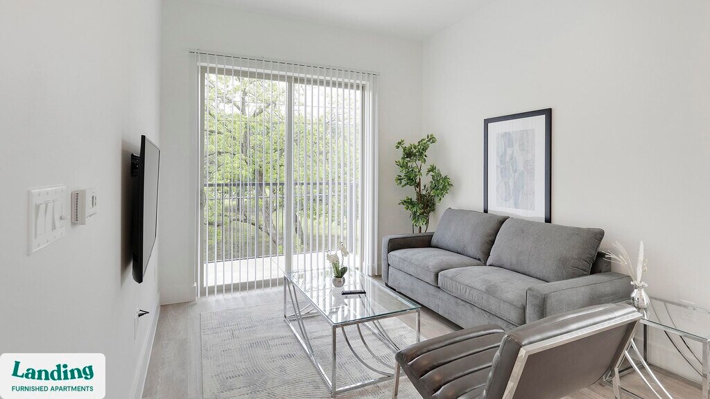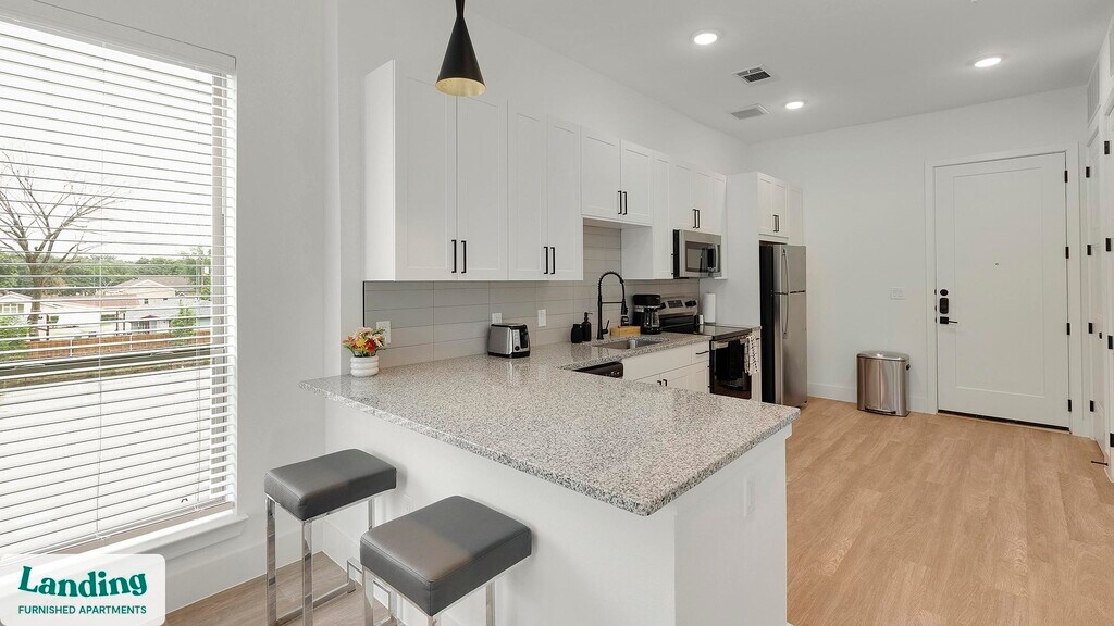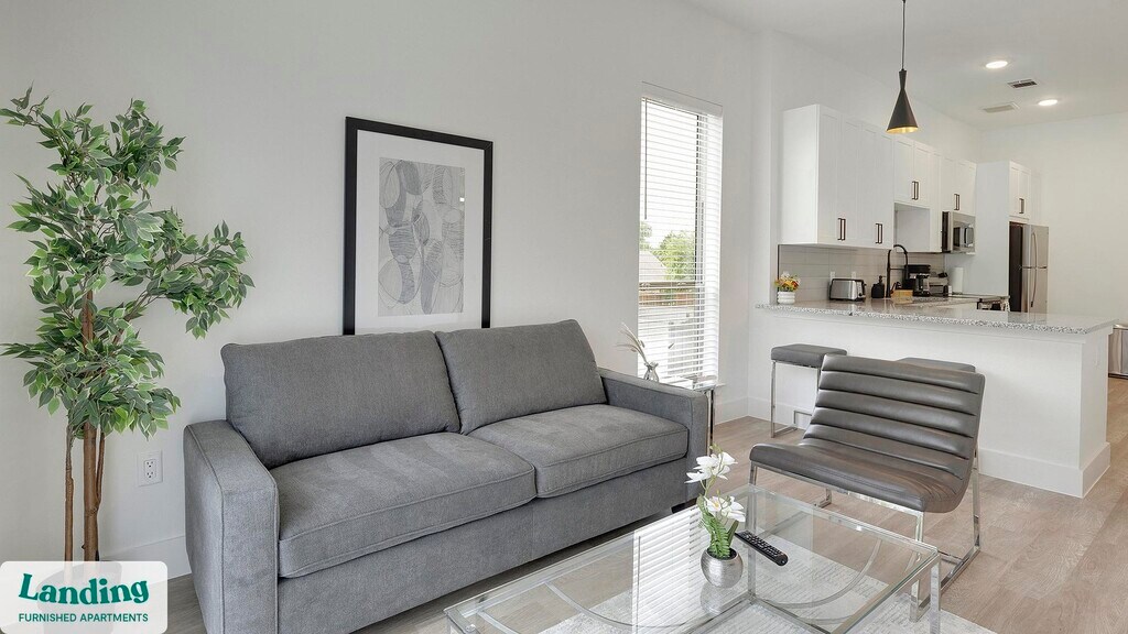 Landing offers flexible lease terms from weeks to months. Please always visit our website or contact us for the latest pricing & availability. Stay longer, save more: 6-Month Minimum base rent: starts at $2010/mo 12-Month Minimum base rent: starts at $1885/mo Landing offers flexible leases across a network of over 35,000 fully-furnished apartments throughout 375+ cities so you can rent on your terms, practically anywhere, and avoid the hassle of paying deposits or application fees. Visit to learn about all the benefits of a Landing membership, see our competitive up-to-date pricing, explore available apartments, take virtual tours, and make reservations online without jumping through traditional rental hoops. Landing's apartments at Railyard are designed for comfortable, easy living, with the ability to stay as long as you like. Experience living with Landing Every apartment is outfitted with all the modern essentials including: custom-designed furnishings, a fully-equipped kitchen with deluxe stainless steel appliances, a gourmet coffee maker, premium linens, Smart TVs, and incredibly fast, reliable internet for working from home. When you live with Landing, you'll enjoy a hassle-free experience with the added benefit of 24/7 access to our dedicated member experience team. Some of the nitty-gritty: a background check and proof of income are required; we're completely smoke-free; bundled utility packages and pricing vary based on length of stay; pet-friendly options available; listed price reflects a 12-month minimum stay.