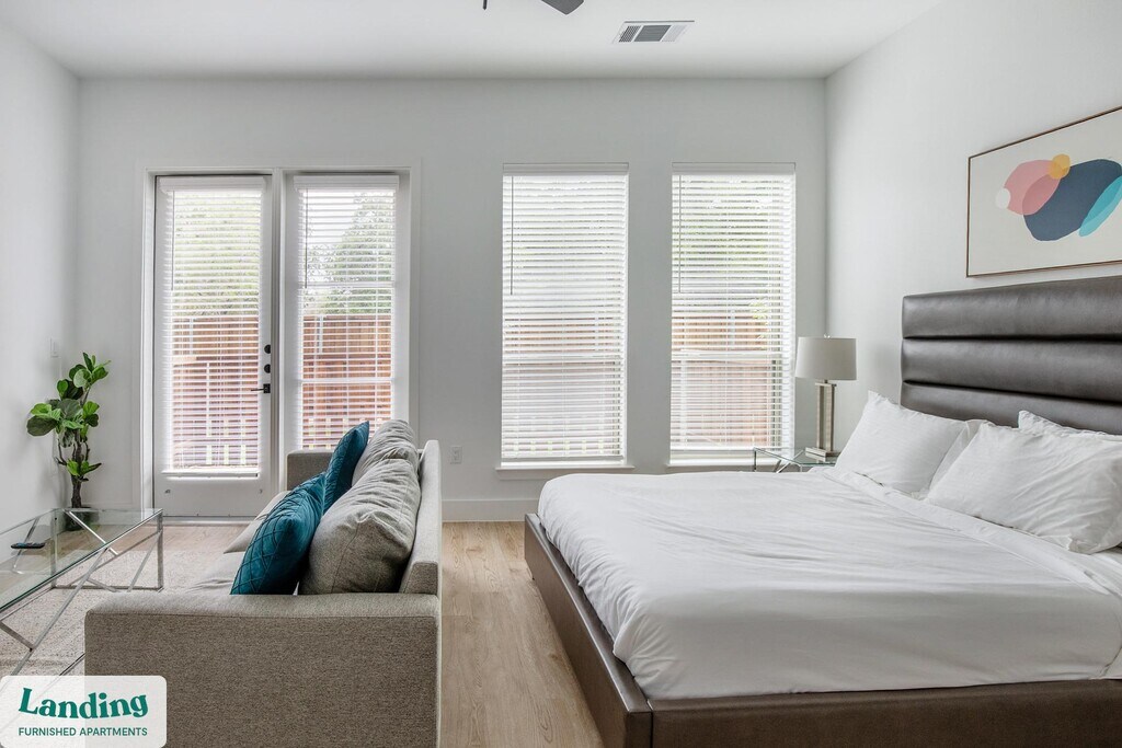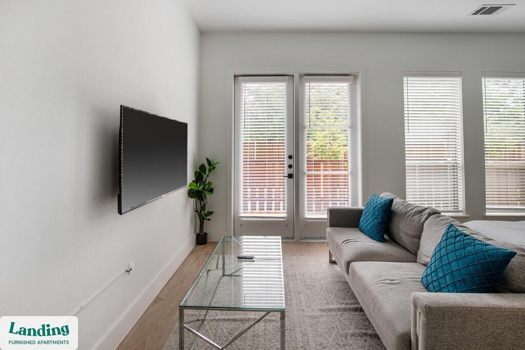 Landing offers flexible lease terms from weeks to months. Please always visit our website or contact us for the latest pricing & availability. Stay longer, save more: 6-Month Minimum base rent: starts at $1980/mo 12-Month Minimum base rent: starts at $1880/mo Landing offers flexible leases across a network of over 35,000 fully-furnished apartments throughout 375+ cities so you can rent on your terms, practically anywhere, and avoid the hassle of paying deposits or application fees. Visit to learn about all the benefits of a Landing membership, see our competitive up-to-date pricing, explore available apartments, take virtual tours, and make reservations online without jumping through traditional rental hoops. Landing's apartments at Railyard are designed for comfortable, easy living, with the ability to stay as long as you like. Experience living with Landing Every apartment is outfitted with all the modern essentials including: custom-designed furnishings, a fully-equipped kitchen with deluxe stainless steel appliances, a gourmet coffee maker, premium linens, Smart TVs, and incredibly fast, reliable internet for working from home. When you live with Landing, you'll enjoy a hassle-free experience with the added benefit of 24/7 access to our dedicated member experience team. Some of the nitty-gritty: a background check and proof of income are required; we're completely smoke-free; bundled utility packages and pricing vary based on length of stay; pet-friendly options available; listed price reflects a 12-month minimum stay.