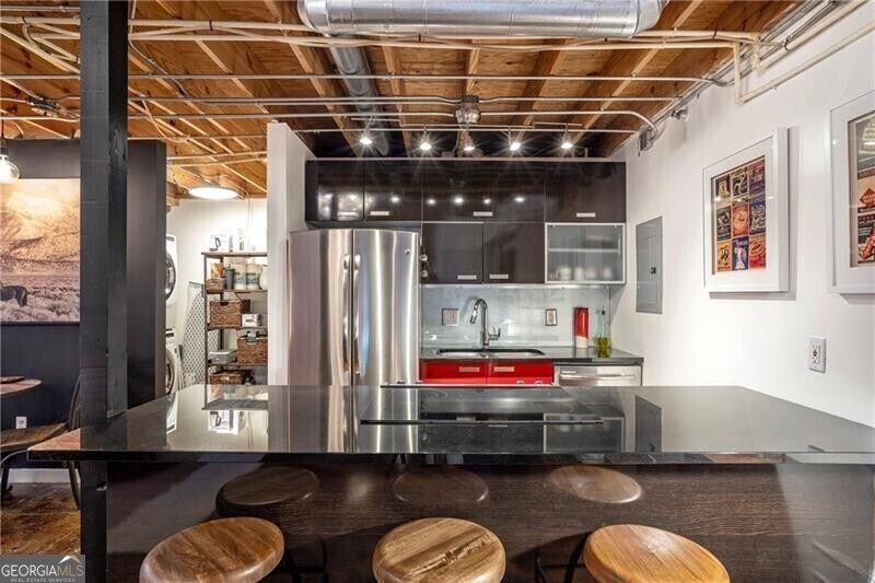 Three story 1920's loft offering security, sanctuary & sophisticated living located in the center of Old Fourth Ward across from Ponce City Market. Loft features polished concrete floors, stainless steel appliances and boutique lighting throughout. Main level opens to an oversized foyer, bedroom, full bath and an abundance of storage/closet space. Step up to a gracious living room, dining room & kitchen meticulously designed, preserving much of the original details of this historical building while also modernizing the home for contemporary living. The third floor offers a gracious bedroom retreat where you can sleep under the stars at night with unobstructed views of the sky. Fully furnished with $500 utility cap included!