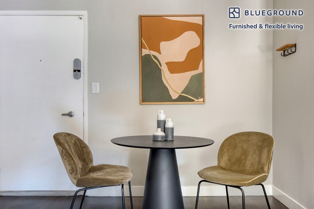 Show up and start living from day one in Sunnyvale with this charming one bedroom Blueground apartment. You’ll love coming home to this thoughtfully furnished, beautifully designed, and fully equipped Sunnyvale home. (ID #SFO1443) The advertised rate of $2,320/month is the lowest available price, based on a 1 month(s) and 24 day(s) stay with a move-in date of December 11, 2025. If you’re looking for a 1-year stay, the rate is $3,260/month. Rates vary depending on the duration of stay, season, and other parameters. For exact pricing and additional pricing components, please visit our website and enter your desired move-in and move-out dates. The rate is applicable when billed upfront; it can be higher if billed in multiple payments. Brokers are welcome to reach out. Were you looking for an unfurnished lease? Try Blueground instead and upgrade from unfurnished to furnished living: - Furnished at rates comparable to unfurnished - No setup or furniture costs - save thousands - Move-in ready - save time, just bring your suitcase Designed with you in mind Gorgeous furniture, fully equipped kitchen, smart TV, and a premium wireless speaker are just a few of the amenities you’ll find inside this one bedroom apartment. Ideally located in Sunnyvale, you’ll find a lot to love outside as well. When you’re ready to relax, you’ll be happy to discover every Blueground bedroom comes with superior quality mattresses, luxury linens, and cozy towels. We handle everything so you can simply show up and start living. This apartment also offers in-apartment laundry. Sleeping arrangements King Bed, 70.8in/180cm Amenities Building amenities unique to this one bedroom apartment include an on-site: - BBQ Area - Dryer - Elevator - Swimming pool - Washing machine - Lounge - Parking - Pets allowed Arrival and ongoing support The entire apartment is yours to enjoy! Throughout your stay, you’ll have access to our Client Experience team through the Blueground App. You can schedule additional cleanings, submit maintenance requests, and view our neighborhood recommendations with just a few taps. We’ll share all details upon confirmation of your stay. Ideally Located This furnished home is in the heart of the South Bay's Sunnyvale, with headquarters to many tech companies. Situated to the north of Santa Clara and to the south of Mountain View, Sunnyvale is a mid-sized city with nearly 150,000 residents. The median age is 35 years old, with a male to female ratio of 50/50. Sunnyvale is best known for its downtown on Murphy Avenue, which still retains its small-town feel. There are two golf courses at the Sunnyvale Golf Course, including an 18-hole championship course. Other things to note Building amenities may have an extra cost. This Blueground apartment has flexible lease options, allowing you to book it for one month, a year, or more. Pets are welcome, though weight limits and breed restrictions apply and may incur fees. Parking is offered based on availability and is subject to a fee. We take great pride in ensuring every photo displayed is shot in our own units with our actual furnishings. That said, we regularly refresh our decor and furniture arrangement, which may differ from what’s pictured.