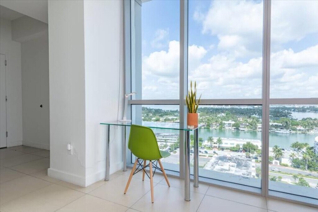 Experience modern luxury in this high-end apartment home right on the white sandy beach of Miami. This modern apartment features a fully equipped kitchen, spacious floor plan, 10-foot ceilings, and much more. Residents can enjoy relaxing on-site amenities including two swimming pools, a Jacuzzi, a full exercise and spa center, and endless beach and ocean views. The luxury continues into this sleek apartment that offers cutting-edge design and endless amenities, making it the ideal place for your next Miami stay. The apartment is fully furnished with bedding, table linens, dinnerware, flatware, glassware, bathroom accessories, towels, basic kitchen electronics, and basic cleaning supplies. It also includes a dishwasher, a gourmet kitchen with a breakfast bar, stainless steel appliances, granite countertops, oversized windows offering panoramic city views, a washer/dryer, spacious walk-in closets, individually controlled heat and air-conditioning, premium cable TV, local phone service, and wireless internet. A complimentary welcome package featuring local area information, toiletries, and everyday home necessities is also included. The building amenities include a full-time concierge, 24-hour doorman, sun deck, swimming pool, fitness center, complimentary Wi-Fi in common areas and on the pool deck, a library, lounge chairs and umbrellas by the pool, and a spa. The Monte Carlo is located minutes away from Miami’s finest dining, shopping, and entertainment. The building offers direct beach access and is centrally located, providing easy access to the vibrant Miami lifestyle. The beach may be closed starting May 2022 due to the City Sand Replenishing project. Check-in is after 4 PM and checkout is at 11 AM. Self-check-in is available with building staff. The apartment includes a sleeper sofa in the living room. [SI]