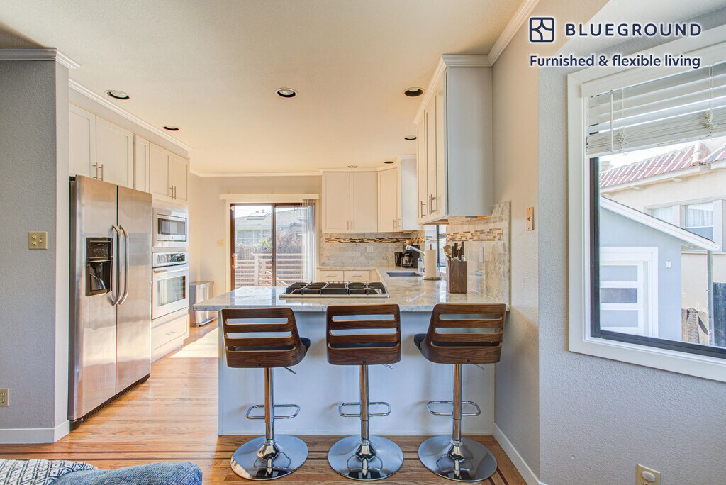 Feel at home wherever you choose to live with Blueground. You’ll love this lovely Downtown furnished three bedroom house with its modern decor, fully equipped kitchen, and exquisite living room. Ideally located, you’re close to all the best that South San Francisco has to offer! (ID #SFO1655) The advertised rate of $4,670/month is the lowest available price, based on a 12 month(s) stay with a move-in date of February 16, 2026. Rates vary depending on the duration of stay, season, and other parameters. For exact pricing and additional pricing components, please visit our website and enter your desired move-in and move-out dates. The rate is applicable when billed upfront; it can be higher if billed in multiple payments. Brokers are welcome to reach out. Were you looking for an unfurnished lease? Try Blueground instead and upgrade from unfurnished to furnished living: - Furnished at rates comparable to unfurnished - No setup or furniture costs - save thousands - Move-in ready - save time, just bring your suitcase Designed with you in mind Thoughtfully designed with bespoke finishes, modern furnishings, and a fully equipped kitchen, you’ll enjoy that “I’m home” feeling with this Blueground house. Whether you’re lounging in your bright living room streaming the latest and greatest entertainment on the smart TV or premium wireless speaker, or getting some well-earned rest on the superior quality mattress with luxury linens, you’ll fall in love with everything this Downtown house has to offer. This house also offers in-house laundry. Sleeping arrangements King Bed, 70.8in/180cm Queen Bed, 63in/160cm Queen Bed, 63in/160cm Amenities Building amenities unique to this three bedroom house include an on-site: - Dryer - Washing machine - Parking - Pets allowed Arrival and ongoing support The entire house is yours to enjoy! Throughout your stay, you’ll have access to our Client Experience team through the Blueground App. You can schedule additional cleanings, submit maintenance requests, and view our neighborhood recommendations with just a few taps. We’ll share all details upon confirmation of your stay. Other things to note This Blueground house has flexible lease options, allowing you to book it for one month, a year, or more. Pets are welcome, though weight limits and breed restrictions apply and may incur fees. Parking is offered based on availability and is subject to a fee. Please keep in mind that this is a walk up building. We take great pride in ensuring every photo displayed is shot in our own units with our actual furnishings. That said, we regularly refresh our decor and furniture arrangement, which may differ from what’s pictured. [SI]