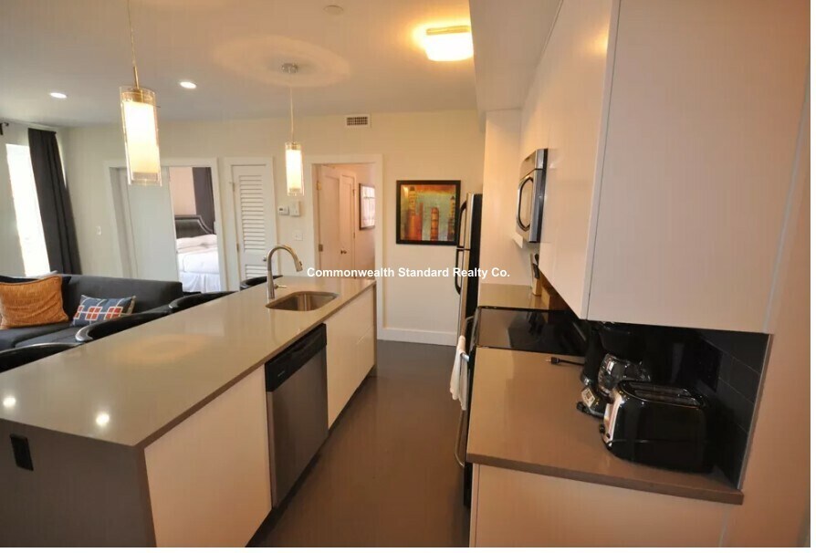 659 Mass Ave Unit 3 - Spacious Two Bedroom, One Bathroom Newly Constructed Apartment in South End. This massive two bedroom, one bathroom apartment balances the historic character of the original industrial building with the contemporary modern finishes and amenities. The unit has high ceilings, exposed concrete floors and is equipped with the latest in urban utilities. This large two-bedroom apartment features a beautiful kitchen equipped with all new stainless steel appliances, granite countertops with waterfall ends, a garbage disposal, a dishwasher and a bar roomy enough to seat three. The living space is located at the rear of the building which is nice and quiet and is filled with beautiful southern sun. There is exposed brick in the entryway. The unit also has direct access to the exterior via an external stair where one can enjoy a morning coffee outside. The apartment has a private washer and dryer, central heating and air conditioning. The unit is also furnished with an