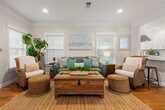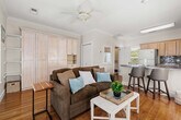 Experience the charm of Southern living with a touch of coastal breeze at this delightful Destin home. Perfect for a multi-family getaway, this property accommodates up to 12 guests with its unique layout of a 3-bedroom, 2-bathroom main house and a 1-bedroom, 1-bathroom carriage house. Relax on the various patios, take a dip in the private pool (heated seasonally for a fee), or enjoy a ride on a six-passenger golf cart available at exceptional rates. The inviting living area features a cozy couch that doubles as a sleeper sofa, occasional chairs, a natural gas fireplace, and a smart TV with standard cable. The open-concept design leads to a traditional dining table for eight and a breakfast bar for two. The newly remodeled kitchen is a chef's dream, complete with white shaker cabinets, a farmhouse sink, and top-notch appliances, including a gas oven and stovetop, dishwasher, fridge, under-counter ice maker, microwave, and coffee makers for both drip and Keurig enthusiasts. The property offers a private pool that can be heated for an additional fee during the cooler months. A six-passenger golf cart is available for rent at discounted rates for guests, with pricing varying by season. The home is pet-friendly with a one-time $325 fee, applicable to emotional support animals as well. Only ADA-recognized service animals are exempt from this fee, and prior notification is required. Impersonating a service animal is a crime in Florida. Nestled in the heart of Crystal Beach within the quaint neighborhood of Kokomo Cove, this home is directly across from Destin Commons, offering plenty of shopping, entertainment, and dining options. The Silver Sands Outlets are just a short drive east, and there are numerous public beach accesses nearby, easily reachable by foot or golf cart. For convenience, consider using Uber, Lyft, or taxis during busy times to avoid traffic and parking hassles. Check-in is at 4 pm and check-out is at 10 am. Early check-ins and late check-outs are not permitted unless arranged in advance. The property does not host parties or events, and any violation of this policy may result in eviction without a refund. Guests under 25 years old are not permitted, and any violation may result in denied access. The pool is for registered guests only, and tampering with the pool heater will incur a minimum $500 charge. Pets are not allowed in the pool or on furniture, and any cleanup of bodily fluids will result in additional charges. Landscaping, pool service, and pest control may occur during your stay and cannot be rescheduled. Parking is available for up to four vehicles, and street parking violations may result in citations from the City of Destin. Includes Wi-Fi access for all your connectivity needs, ensuring you can stay connected during your stay.