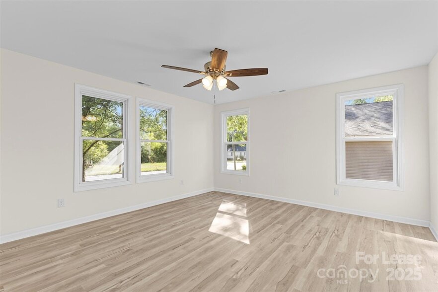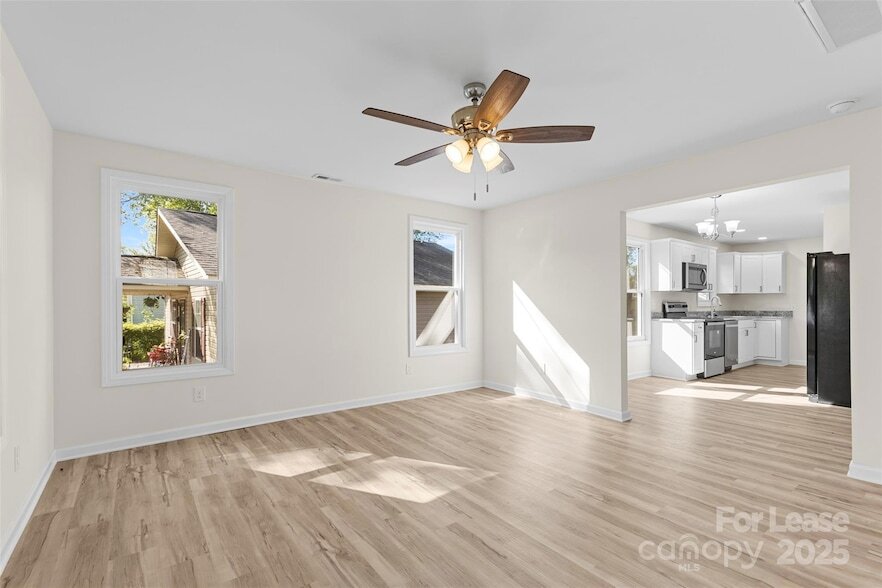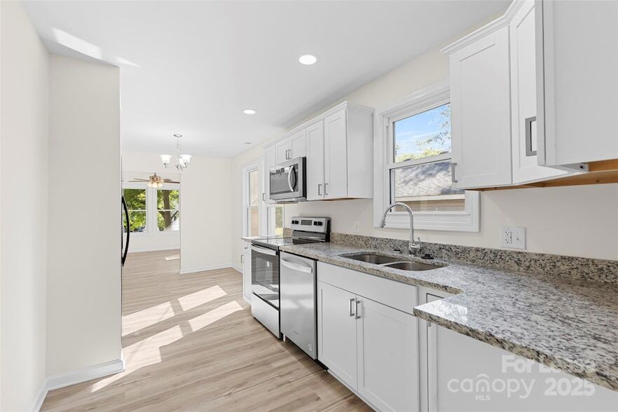 Welcome to this 2 beds, 2 baths beautifully remodeled home in the heart of Rock Hill, SC! This home boasts a contemporary design with LVP flooring throughout and an open floorplan that seamlessly connects the Great Room, Dining Area, and Kitchen. The updated kitchen features sleek white shaker cabinets, luxurious granite countertops, and SS appliances, offering both style and functionality. Located at the rear entry, the Mud Room includes the Laundry area, providing practical storage and organization. Designed for privacy, this layout places the Guest Suite and Primary Bedroom on opposite sides of the home. A generous-sized bed with an updated bath that includes a granite vanity and a walk-in shower. The larger primary bedroom features a ceiling fan. The ensuite is fully updated with an extended vanity area and a walk-in shower. Enjoy the fenced backyard and a huge shed offers additional storage or workshop space.