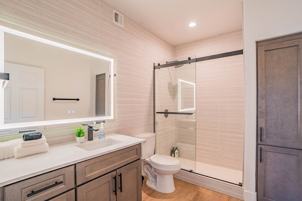 Experience an exclusive stay in this stylish 2-bedroom apartment in prime Glendale, located on the 3rd floor with no elevator access. Perfect for families, friends, or business travelers, this spacious retreat offers upscale comfort, fast Wi-Fi, and a serene vibe. Walk to top dining, shops, and attractions, then unwind in a clean, private space designed for relaxation and ease. Your ideal home away from home awaits. Relax in this 2-bedroom, 2-bathroom unit featuring a socially and environmentally conscious living environment. The innovative open-concept design blends the living and dining areas with the fully equipped kitchen, creating a modern and sleek living experience. The living room is ideal for enjoying the company of friends and family with a stylish interior, a 4K 55" HDR Smart TV, and a variety of games. The kitchen includes a microwave, air fryer, blender, stove, oven, refrigerator/freezer, toaster, coffee maker, and all necessary dining essentials. Parking is available on the premises with instructions provided at check-in. Pets are allowed depending on size or if they are service animals, with an additional cleaning fee of $20 per night per pet. There is a 2-pet maximum and only cats and dogs are allowed. If pets are brought without prior notification, a $500 fee will be charged. Located in prime Glendale, this apartment offers easy access to top dining, shops, and attractions, making it an ideal spot for exploring the area. Guests need to walk upstairs as there is no elevator access. The apartment is on the 3rd floor. Noise monitors are installed to measure noise levels, and tampering with them will incur a fee. Security cameras are located in the hallways for added security. A guest verification process is required, including providing a government-issued ID and possibly undergoing a background check. Pets are allowed with restrictions on certain breeds and a maximum of two pets. A $500 fee applies if pets are brought without prior notification. The apartment includes an office desk and chair in Bedroom 1, providing a comfortable space for work-from-home needs. Fast Wi-Fi is available throughout the apartment. [SI]