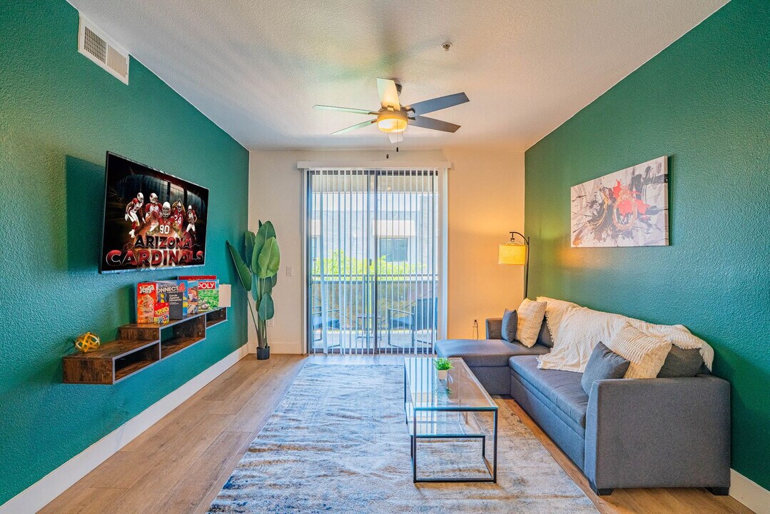 Escape to this lush 2-bedroom apartment on the 3rd floor of a walk-up building in the heart of Glendale. Feel at home in this spacious retreat, surrounded by greenery and stylish touches, offering comfort, charm, and convenience. The living space features an innovative open-concept design that blends the living and dining areas with the kitchen, creating a modern and sleek living experience. The living room includes a sofa bed and chair, a 4K 55" HDR smart TV, a coffee table, phone charging blocks and cables, and games including Connect 4, a poker set, Uno, Monopoly, Sorry, Jenga, Catan, and Cards Against Humanity. The fully equipped kitchen features a microwave, air fryer, blender, stove, oven, refrigerator/freezer, toaster, coffee maker with coffee essentials, electric kettle, sink with hot and cold water, glasses, silverware, pots and pans, and a dining table with chairs. Bedroom 1 features a queen-size bed with pillows, linens, and sheets, an office desk and chair, and reading lamps. Bedroom 2 features a full-size bed and a full bunk bed with pillows, linens, and sheets, and reading lamps. The bathroom is stocked with essential toiletries, including towels, hand towels, washcloths, a bath with a shower, a wash basin, a mirror, and a toilet. Parking is available on the premises, and instructions will be given at check-in. Pets are allowed depending on size or if they are service animals, and an additional cleaning fee of $20 per night is required per pet. There is a 2 pet maximum and only cats and dogs are allowed. Breed restrictions apply to Alaskan Malamute, Belgian Malinois, Boxer, Chow Chow, Dalmatian, Doberman Pinscher, German Shepherds, Husky Breeds, Pit Bull Breeds, Presa Canario's, Rottweiler, Staffordshire Terrier, and Wolf Hybrid. Just minutes from top restaurants, shops, and local attractions, it’s your serene home base in the city. There are no elevators at this property, so guests need to walk upstairs. Local bookings are not accepted, and all guests must be 23 years old and above. If you are found to have brought pets without prior notification, there will be a $500 fee. Noise monitors are installed in the unit that measure noise levels in decibels, and tampering with them will result in a fee. There are security cameras in the hallways for security. [SI]