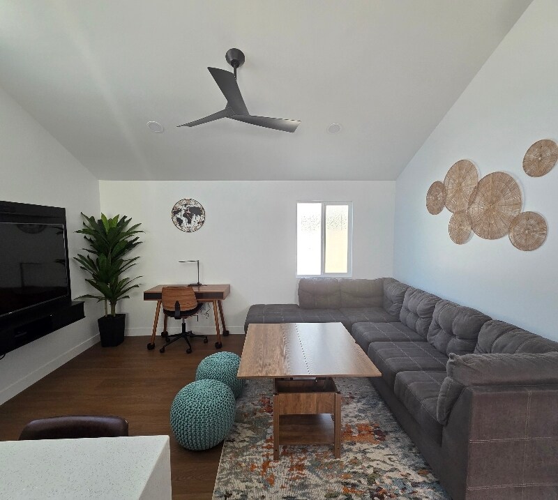 Property Id: 2147381 Fully furnished 2BR/2BA ADU in Winnetka, near Woodland Hills, Sylmar, Studio City and the surrounding San Fernando valley areas—perfect for traveling professionals. Close to 405 fwy, Orange line and public transportation. Quiet, family-friendly area with private entry, EV charger, one parking spot, and secured yard with cameras. Adjustable queen beds with black-out curtains. Comfortable, turnkey setup with flexible lease: 3-6 months, then month-to-month thereafter. Ideal for temp housing, travel nurses, or corporate stays.