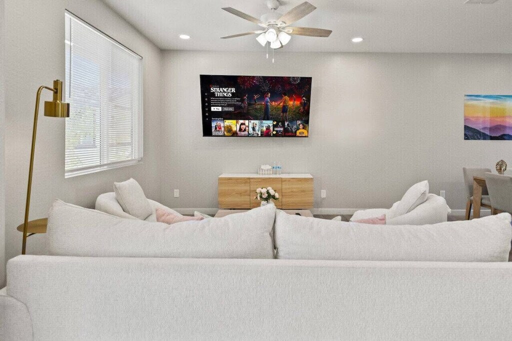 The advertised rate of $2,282/month is the lowest available price, based on a 30 day(s) stay with a move-in date of July 12, 2026. Rates vary depending on the duration of stay, season, and other parameters. For exact pricing and additional pricing components, please visit our website and enter your desired move-in and move-out dates. The rate is applicable when billed upfront; it can be higher if billed in multiple payments. Feel at home in this modern 2-bedroom, 2-bathroom apartment in Glendale, located on the 1st floor. This stylish home offers a king-size bed and luxury Beautyrest mattresses, perfect for relaxing after a day out. This beautifully curated apartment features an open-concept living and dining area with wood accents and contemporary finishes. The fully stocked kitchen includes a stove, oven, fridge, microwave, dishwasher, coffee maker with coffee essentials, toaster, kettle, full dinnerware, cookware, and baking trays. The bathrooms are well-equipped with a shower, bathtub, toilet, sink, mirror, towels, hairdryer, and essential toiletries. There is a 70" 4K smart TV in the living room, a king-size bed with a 55" HDR smart TV, and two full beds with a 60" HDR smart TV. Additional amenities include plush bedding, black-out curtains, a foldable crib, shelf space, reading lamps, an ironing set, and an in-unit washer and dryer. Free on-site parking and high-speed Wi-Fi are included. Centrally located in the heart of Glendale, this apartment is minutes from Westgate, Topgolf, shopping, dining, and close to State Farm Stadium for NFL games, concerts, and events. Enjoy quick access to major highways. Smoking is not allowed anywhere on the property—indoors, outdoors, patios, or balconies, and a $500 fine applies if smoking is detected. Tampering with smoke detection devices will result in a $500 fine. Pets are not allowed on the property, and bringing a pet will result in a $500 fine and may lead to reservation cancellation without refund. Service animals are welcome, but please minimize noise and do not leave them unattended in the apartment. Guests are responsible for any damages or excessive cleaning. No parties or events are allowed, and parties will lead to police intervention, eviction without refund, and a $500 fine. Unauthorized guests will incur a $100 per guest fine. Quiet hours are from 8 PM to 7 AM, so please keep noise to a minimum. A $100 fine applies for unauthorized parking. Do not use our address for deliveries, as we do not receive or handle guest packages. A $150 per hour fee applies for late checkout without approval. A $400 fine per pet applies for unauthorized pets. [SI]
