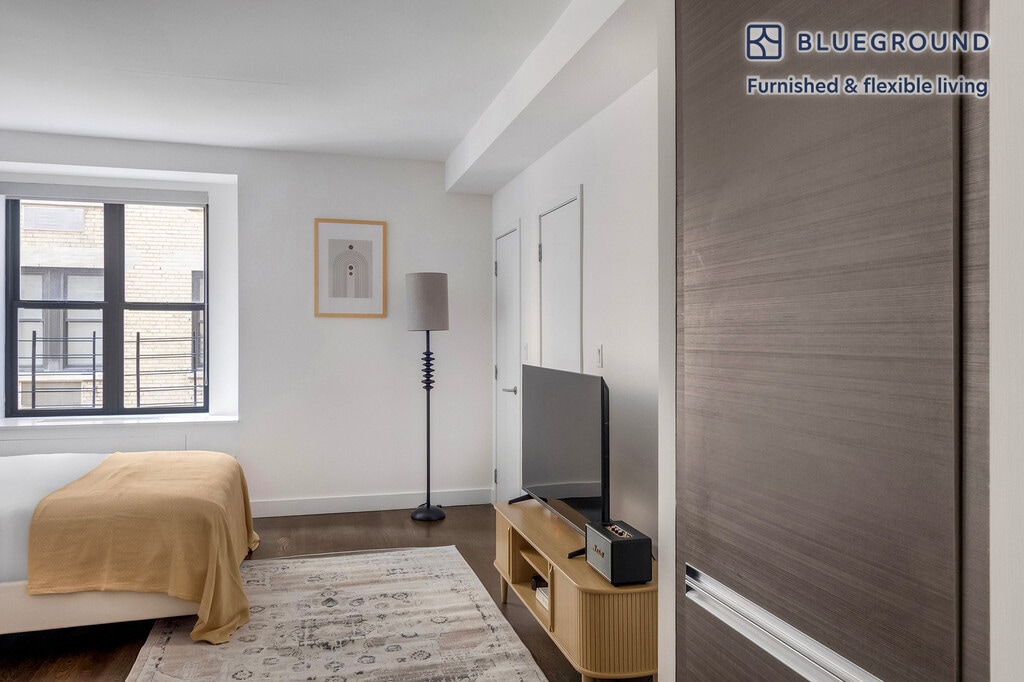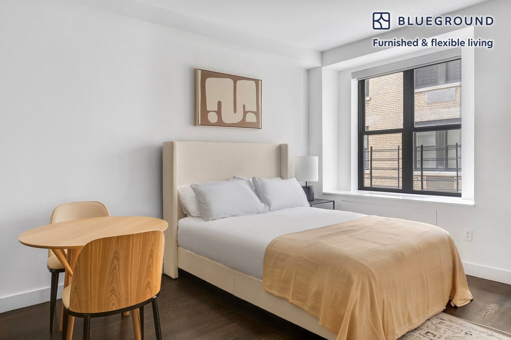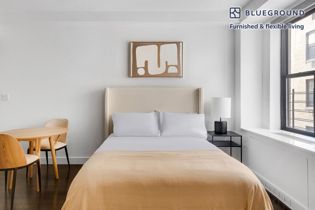 Feel at home wherever you choose to live with Blueground. You’ll love this bright Upper West Side furnished studio apartment with its modern decor, fully equipped kitchen, and roomy living room. Ideally located, you’re close to all the best that New York has to offer! (ID #NYC1960) The advertised rate of $3,370/month is the lowest available price, based on a 1 month(s) and 3 day(s) stay with a move-in date of January 1, 2026. If you’re looking for a 1-year stay, the rate is $3,730/month. Rates vary depending on the duration of stay, season, and other parameters. For exact pricing and additional pricing components, please visit our website and enter your desired move-in and move-out dates. The rate is applicable when billed upfront; it can be higher if billed in multiple payments. Brokers are welcome to reach out. Were you looking for an unfurnished lease? Try Blueground instead and upgrade from unfurnished to furnished living: - Furnished at rates comparable to unfurnished - No setup or furniture costs - save thousands - Move-in ready - save time, just bring your suitcase Designed with you in mind As with any Blueground apartment, you’ll find a thoughtfully designed space complete with beautiful furniture and a fully equipped kitchen in this studio property. And, thanks to our superior quality mattresses, luxury linens, and towels, you can relax knowing you’ll always feel comfortably at home. When you’re ready for some fun, you can take in the New York vibes or bring the entertainment to you with the premium wireless speaker or smart TV. Sleeping arrangements Queen Bed, 63in/160cm Amenities Building amenities unique to this studio apartment include an on-site: - Doorman - Dryer in building - Elevator - Swimming pool - Washing machine in building - Lounge - Pets allowed Arrival and ongoing support The entire apartment is yours to enjoy! Throughout your stay, you’ll have access to our Client Experience team through the Blueground App. You can schedule additional cleanings, submit maintenance requests, and view our neighborhood recommendations with just a few taps. We’ll share all details upon confirmation of your stay. Ideally Located This furnished property is on the Upper West Side, one of the greenest parts of Manhattan. Nestled between Riverside Drive and Central Park, the area attracts residents seeking a quieter neighborhood. Beautifully maintained brownstones and an abundance of good schools make it a preferred choice for families. Popular cultural attractions include the Natural History Museum and Lincoln Center. In addition, Columbia University and Barnard College are at the north end of the neighborhood and about a 15 minute ride on the subway. Other things to note Building amenities may have an extra cost. This Blueground apartment has flexible lease options, allowing you to book it for one month, a year, or more. Pets are welcome, though weight limits and breed restrictions apply and may incur fees. Brokes CYOF. We take great pride in ensuring every photo displayed is shot in our own units with our actual furnishings. That said, we regularly refresh our decor and furniture arrangement, which may differ from what’s pictured.