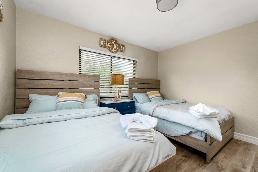 Feel safe and right at home when you enter this South Pasadena getaway oasis. This spacious yet cozy home is perfect for a weekend escape or a long-term stay. Equipped with all your vacation essentials, this home features three spacious bedrooms, two bathrooms, and large living areas. Enjoy the large full kitchen, spacious indoor and outdoor dining areas, a free washer/dryer, an outdoor shower, a tiki bar, and a putting green. Relax by the private saltwater pool, with the option to add heat, and lounge on the outdoor pool loungers. The golf cart is available to reserve for $80 per day, with a two-day minimum. Pool heating is available for $35 per day of stay, and requires at least a week's notice. Located in a quiet, residential neighborhood with shopping and restaurants nearby, this home offers easy access to St. Pete Beach (1.4 miles), Albert Whitted Airport (6 miles), and Splash Harbour Water Park (12 miles). Quiet hours are between 10 PM and 9 AM. There is absolutely no smoking and no drugs allowed inside the home or elsewhere on the property. No glass is allowed by the pool. A maximum of seven guests are allowed at any given time. Only the number of guests indicated on the reservation are allowed to stay overnight on the property, unless otherwise agreed upon in written form. Up to three standard-size cars can park in the driveway. Please respect the neighborhood and neighbors, and keep excessive noise to a minimum. No fireworks of any kind are allowed. Firearms are not allowed on the property, unless kept locked in a vehicle. Failure to observe the rule to not tamper with the pool equipment could result in fines up to $150 plus damages. We welcome one house-trained dog with written notification and approval, and a pet fee may apply. [SI]