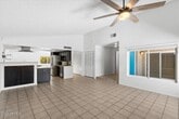 Centrally located in Mesa, near Dobson Ranch, this 4 bed, 2 bath home features soaring vaulted ceilings with a spacious open concept that everyone craves! The living room, kitchen and dining are all connected making this space light, bright and inviting. It is beautifully updated with today's colors, designs and finishes. The expansive primary bedroom is split from the other 3 generously sized bedrooms and there is a massive flex space that can be used as a den/office/ 2nd living/ playroom or whatever you can dream up! Large lot with private pool and no HOA! (Pool fence is currently installed, not shown in picture) Refrigerator, washer, dryer, pool and landscaping maintenance are all included with rent!