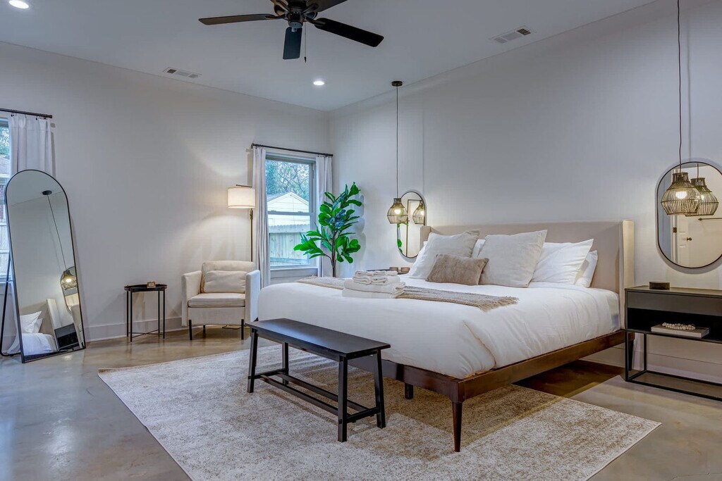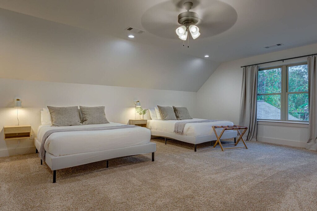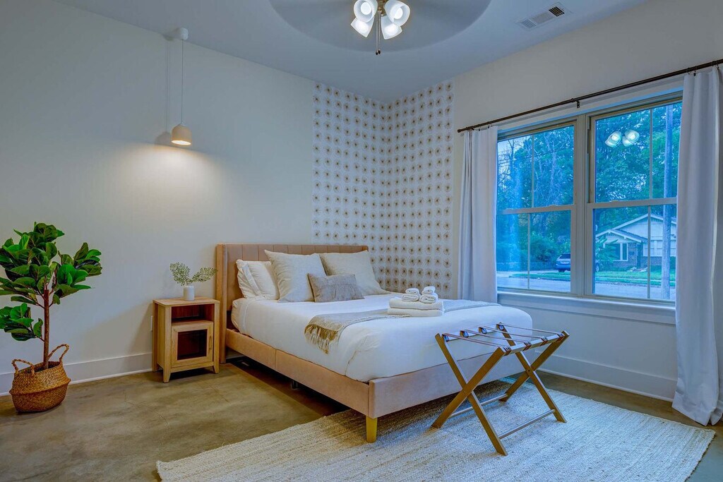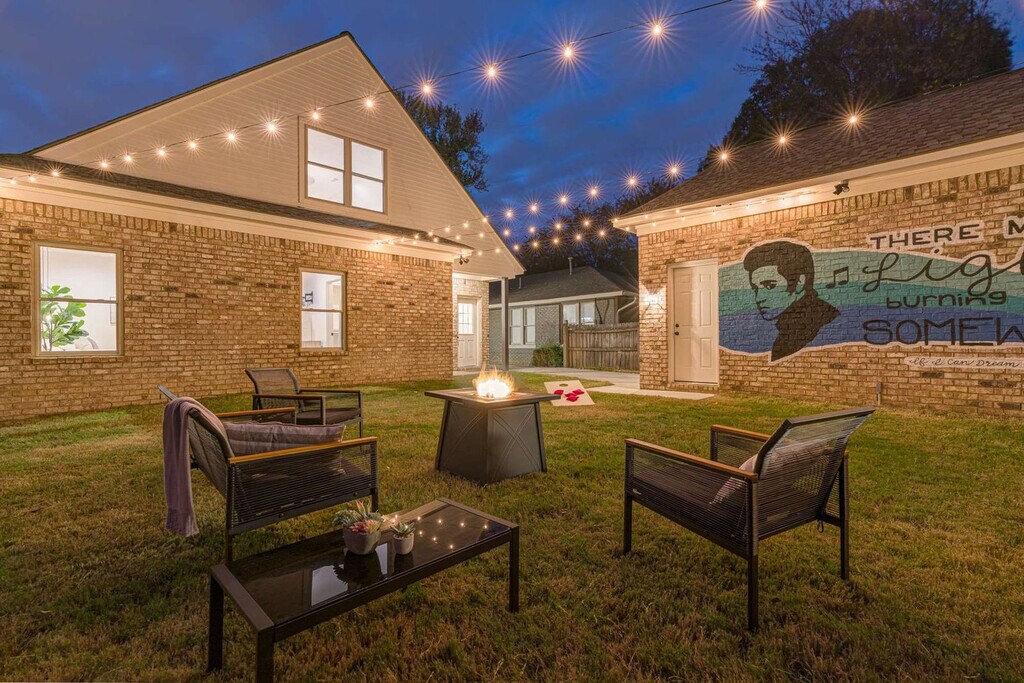 This 4-bedroom home is perfectly situated in a prime location in Memphis, TN, offering everything you need for an amazing vacation. Just 11 minutes away from Beale Street and Downtown Memphis, and within walking distance to Overton Park and the Memphis Zoo, this home provides easy access to the city's vibrant attractions. Enjoy the expansive backyard with a fire pit, corn hole, BBQ grill, and bar cart, making it an ideal retreat for relaxation and entertainment. Ample parking is available, and the home includes a washer and dryer for your convenience. Welcome to your Midtown Memphis escape! This brand-new 2-level home in the heart of Midtown Memphis combines comfort, convenience, and charm. With 4 spacious bedrooms and 2 full bathrooms, it comfortably accommodates up to 12 guests, making it perfect for families, friends, or group getaways. The chef's kitchen is fully stocked with high-end appliances, a large refrigerator, and ample cabinetry, ensuring you have everything you need to prepare delicious meals. The living room features a 55” smart TV, a large plush sofa, and an open floor plan, providing a cozy space to unwind. Parking is available in the driveway for up to 4 cars. If you're interested in a long-term stay, please reach out to inquire about availability. Nestled on a quiet street, this home offers peaceful surroundings while being just steps away from the city's vibrant energy. Walk to Overton Park, the Memphis Zoo, and nearby attractions, or take a quick drive to Beale Street, Downtown Memphis, Cooper Young, top restaurants, shopping spots, and more. Explore the culture, enjoy the nightlife, or relax in this cozy space, which serves as the perfect base for your Memphis adventure. Check-in is at 4pm and check-out is at 10am. No pets are allowed, and no parties are permitted, with violations potentially resulting in immediate termination of the stay. An exterior camera is installed solely to monitor the cleaning team for quality and security purposes. Guests must be 21 years or older to book this property. A guest verification process is required within 48 hours of booking confirmation, and a rental agreement must be signed prior to check-in, including a non-refundable $60 damage waiver for accidental damage during your stay. [SI]