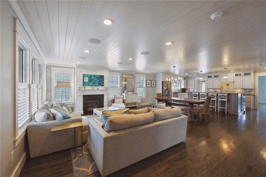 Nestled in the heart of Narragansett Pier, just 2 blocks from Narragansett Town Beach, the sea wall, local shops, and renowned restaurants, this exceptional home offers 4 bedrooms and 2.5 baths within over 2,400 square feet of sun-drenched living space. The open-concept kitchen and living area are designed for modern family living and seamless entertaining. On the first floor, you'll find a beautiful master suite, while the second floor features three spacious bedrooms, each with two large closets, and a family bath. The true highlight of this remarkable property is the outdoor space. It boasts a terraced patio, a custom outdoor kitchen, a gas fire pit, and an outdoor shower. Enjoy family movie nights under the stars with the 130" projection screen and Bose outdoor speakers. The home also includes a detached 2-car garage with heated tile floors, a custom workbench, shelving, and wine and beverage fridges perfect for additional entertaining space. 67 Caswell is also a smart home, offering 4 zones of smart irrigation (including for your porch planters), a whole-house generator, water purification system, 60-amp EV charger, filtered dehumidifier, and more. Every detail has been carefully considered to enhance your comfort and convenience. All that's left to do is relax by the beach because your perfect home by the sea awaits. AVAILABLE-3 DAY RENTAL-APRIL 21 TO JUNE 28-$1k per nigh, 7 DAY MINIMUM-JUNE 28-AUGUST 2, AUGUST 23-SETEMBER 6-$1285 per night.