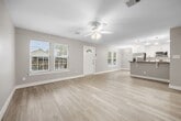 Lovely 3 bed, 2 bath recent construction with large fenced backyard that has been freshly updated and is MOVE-IN READY! Recent paint and wood look flooring throughout (no carpet!). The open floorplan allows for easy entertaining or spending time with family. Nicely appointed kitchen that's open to living with all appliances included. The primary bedroom features an en-suite bathroom with walk-in closet. Both secondary bedrooms share a full guest bathroom and are comfortably sized (queen beds welcome). Bonus - mature trees throughout the backyard that provide plenty of shade, making this area easy for kids or pets to enjoy. Lastly, the front porch is perfectly sized for a couple of lounging chairs. Located less than 20 minutes from the Heights, you will enjoy a nice variety of grocery stores (and restaurants) nearby. Welcome home!