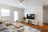Feel at home in this intimate half of a duplex, The Cozy Corner. As you step inside, you'll be welcomed into the heart of the home, the living room, where comfort meets style. Relax on the plush couch and stream your favorite shows and movies on the Smart TV, or enjoy a good book from our collection. This charming space features two bedrooms with cloud-like queen-size beds and walk-in closets, offering a restful retreat. A quiet desk area in one of the bedrooms provides a dedicated workspace, perfect for remote work. Down the hall, you'll find a full bathroom. The kitchen is fully equipped with modern appliances, including a dishwasher, stove/oven combo, refrigerator, coffee pot, toaster oven, and a washer and dryer, making it easy to prepare meals and feel at home. The Cozy Corner offers a fully equipped kitchen with all the essentials, including a dishwasher, stove/oven combo, refrigerator, coffee pot, toaster oven, and a washer and dryer. Whether you're preparing a quick breakfast or a gourmet dinner, you'll find everything you need to make your stay comfortable and convenient. Pets are welcome with a pet fee of $75. Please inform us in advance to secure authorization for bringing a pet. You are required to clean up after your pet, including waste, or additional charges may apply. A car is recommended for getting around, although there is a nearby bus stop for public transportation. Uber and Lyft are also accessible, providing flexibility for exploring the area. Guests will receive a door code the day prior to or the morning of your reservation date. A rental agreement must be signed before receiving check-in instructions.