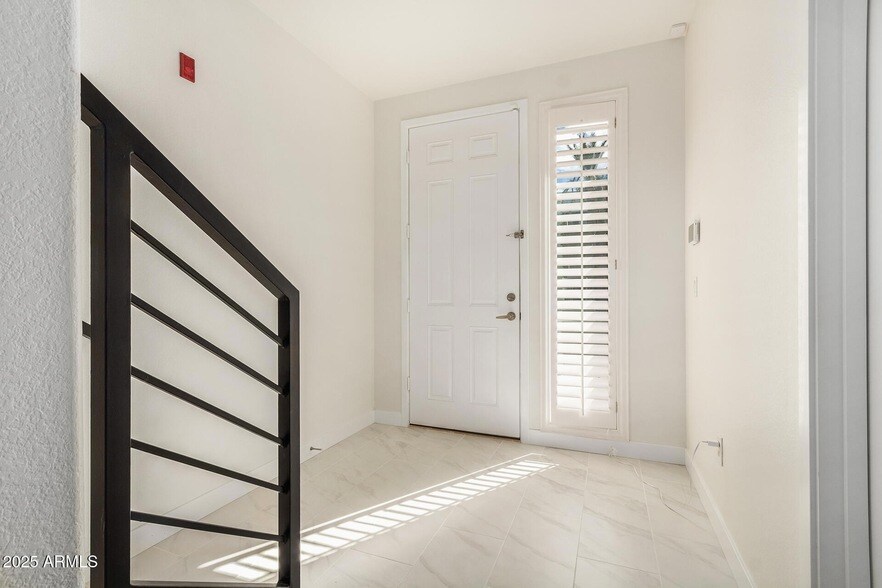 Enjoy Living in the Westgate Entertainment District and State Farm Stadium. Offering 2 bedrooms and 2 bathrooms, this home combines comfort, style, and a prime location. The entry level welcomes you with a versatile double-door den that opens to the front patio, perfect for a home office or quiet retreat. Upstairs, the open-concept second level features a spacious living and dining area with a cozy fireplace and sliding doors that extend the living space to a private balcony. The kitchen is a chef's delight, complete with stainless steel appliances (included) , granite countertops, a center island with breakfast bar, built-in desk, pantry, and plenty of cabinetry. The primary suite provides a true retreat with an ensuite bathroom featuring dual sinks, a separate soaking tub, and shower. Throughout the home, you'll find plantation shutters, stylish light fixtures, and additional thoughtful upgrades, including fire sprinklers for added peace of mind. Residents of The Quarter enjoy access to fantastic community amenities, including a clubhouse, fitness center, spa, and sparkling pool. With its unbeatable location near dining, shopping, and entertainment, this townhome has it all.