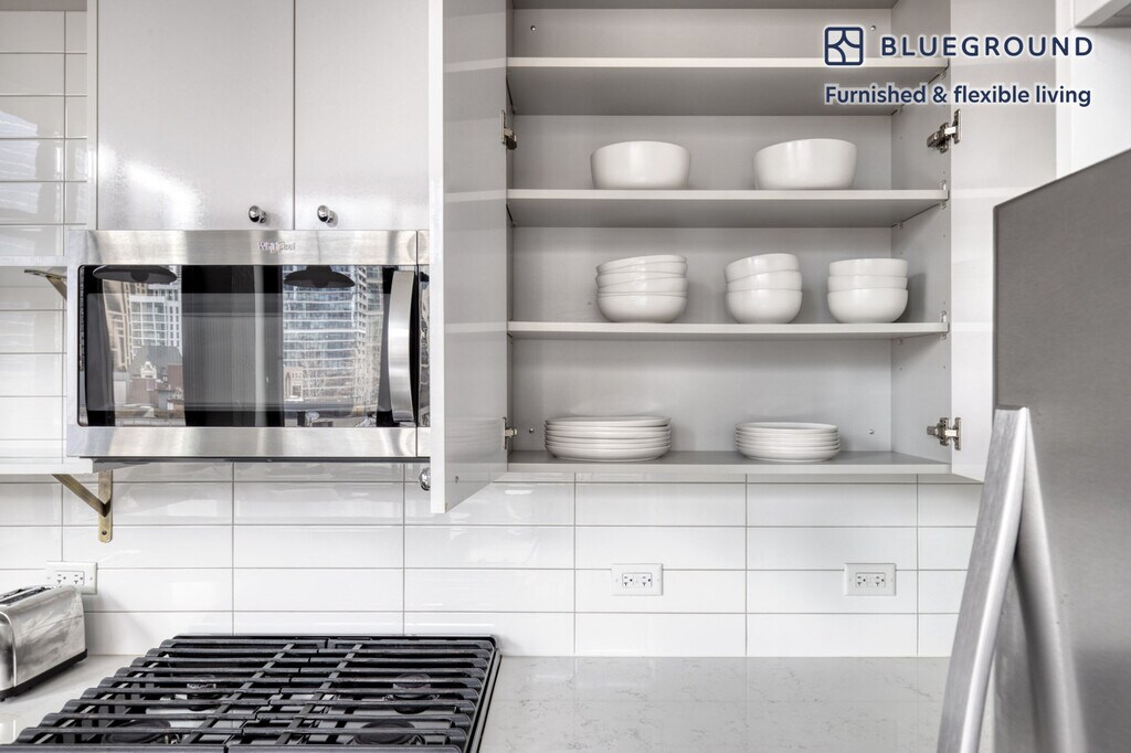 Discover the best of Chicago, with this one bedroom apartment in River North with views over the city. It’ll be easy to simply show up and start living in this furnished apartment with its fully equipped kitchen, living room, and our dedicated, on-the-ground support. (ID #CHI894) The advertised rate of $2,640/month is the lowest available price, based on a 6 month(s) and 13 day(s) stay with a move-in date of October 19, 2025. If you’re looking for a 1-year stay, the rate is $3,090/month. Rates vary depending on the duration of stay, season, and other parameters. For exact pricing and additional pricing components, please visit our website and enter your desired move-in and move-out dates. The rate is applicable when billed upfront; it can be higher if billed in multiple payments. Brokers are welcome to reach out. Were you looking for an unfurnished lease? Try Blueground instead and upgrade from unfurnished to furnished living: - Furnished at rates comparable to unfurnished - No setup or furniture costs - save thousands - Move-in ready - save time, just bring your suitcase Designed with you in mind As with any Blueground apartment, you’ll find a thoughtfully designed space complete with beautiful furniture and a fully equipped kitchen in this one bedroom property. And, thanks to our superior quality mattresses, luxury linens, and towels, you can relax knowing you’ll always feel comfortably at home. When you’re ready for some fun, you can take in the Chicago vibes or bring the entertainment to you with the premium wireless speaker or smart TV. This apartment also offers in-apartment laundry. Sleeping arrangements Queen Bed, 63in/160cm Amenities Building amenities unique to this one bedroom apartment include an on-site: - BBQ Area - Dryer - Elevator - Washing machine - Lounge - Pets allowed Arrival and ongoing support The entire apartment is yours to enjoy! Throughout your stay, you’ll have access to our Client Experience team through the Blueground App. You can schedule additional cleanings, submit maintenance requests, and view our neighborhood recommendations with just a few taps. We’ll share all details upon confirmation of your stay. Ideally Located This furnished apartment is located in River North, Chicago’s most trendy neighborhood. The bridges combined with the river walk offer incredible views. Nearby on Michigan Avenue is the city’s premier shopping area. One of the neighborhood’s biggest assets is the walk-to-work appeal. Young professionals, who live and work in the area, can quickly get to the office in the morning and just as easily enjoy an after-work drink, as the area is considered a premier entertainment center. Don’t miss a stroll on Kinzie and Hubbard streets. Merchandise Mart, the iconic building with showrooms, shops, and office space, is only a 5 minute walk. The Loop is just across the bridge and is about 5 minute walk. Other things to note Building amenities may have an extra cost. This Blueground apartment has flexible lease options, allowing you to book it for one month, a year, or more. Pets are welcome, though weight limits and breed restrictions apply and may incur fees. We take great pride in ensuring every photo displayed is shot in our own units with our actual furnishings. That said, we regularly refresh our decor and furniture arrangement, which may differ from what’s pictured. Also note - This apartment's central location means it can be noisy at times - Noise from the nearby nightlife can sometimes be heard late at night - This apartment has high ceilings