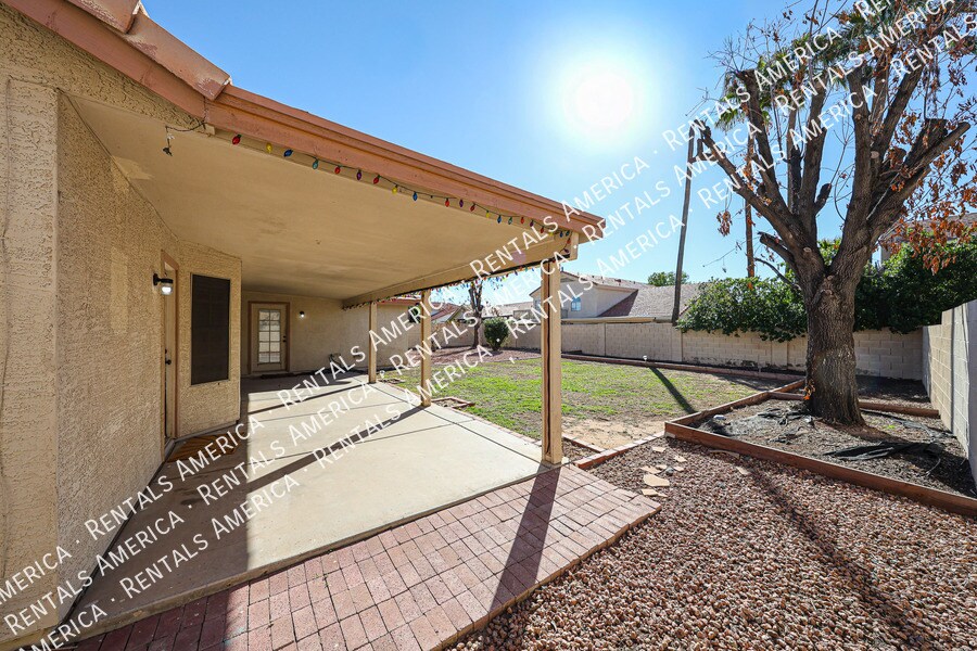 Priced to rent! Amazing 4 BR/2BA Arrowhead Ranch Home. Enter into formal living Room/dining room and continue to a functional kitchen with access to spacious covered patio and back yard. Kitchen features a glass top stove, built-in microwave, farm style sink w/ spray faucet, quartz countertops, updated white cabinetry, oversized island and closet pantry. Adjacent breakfast nook and family room. Primary Suite includes large bedroom w/ back door access, mirrored sliding door to walk-in closet, double sink vanity, garden tub, walk-in shower and private toilet room. Laundry room just off kitchen w/ washer and dryer Included. Minor repairs scheduled. One Time Admin Fee: $300, Pet Deposit: $300/pet (if applicable), Service Fee: 2%. $39/month Resident Benefits Package, Helping Heroes Discount Available! Cats Allowed Ceramic Tile Disposal Dogs Allowed Dryer Garage Pets Allowed Washer