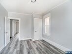 Freshly renovated 1-bedroom, 1-bath apartment featuring an updated kitchen with stainless steel appliances, gas range, and ample cabinet space. Bright living area, spacious bedroom, and modern bathroom with sleek finishes. Vinyl plank flooring, light gray walls, and large windows throughout. Move-in ready and well located near transportation and shopping.