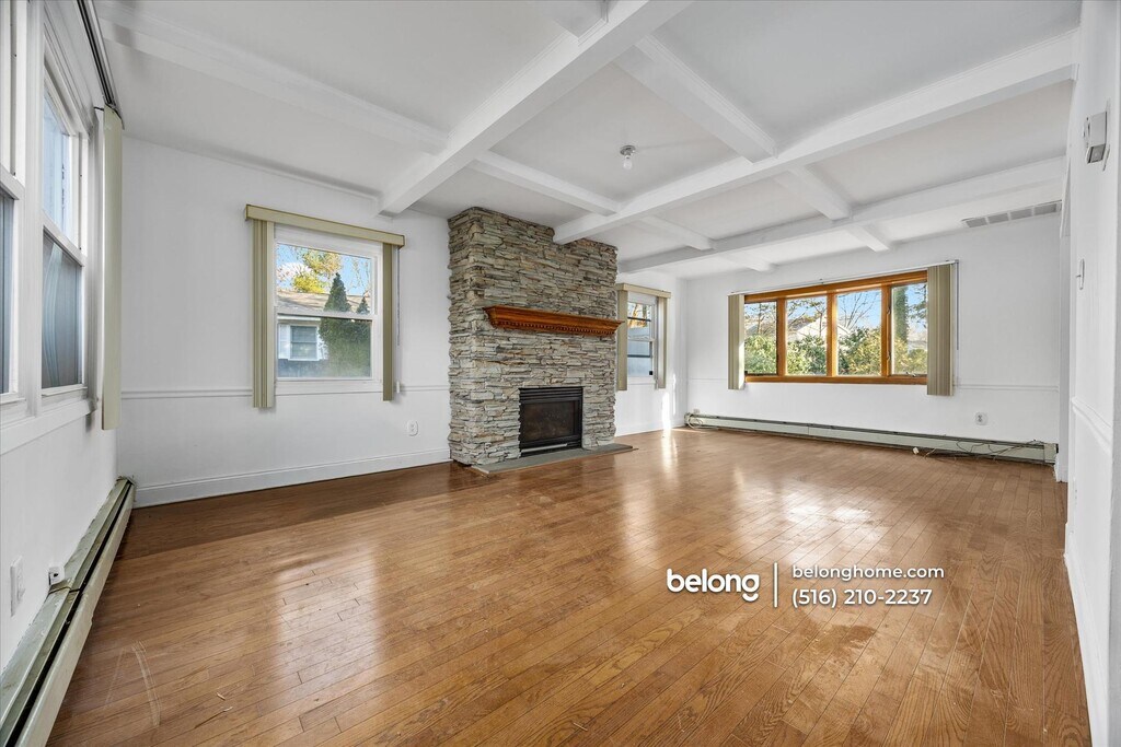 Offering generous living space and distinctive architectural character, this 3-bedroom, 2.5-bath home pairs classic details with a functional layout suited to everyday living. In the main living area, a coffered ceiling and a stone fireplace create a defined focal point without overwhelming the room. Multiple windows with vertical blinds allow for steady natural light while maintaining privacy. The kitchen is equipped with ample cabinetry, expansive counters, and built-in appliances that support daily routines. A central peninsula provides additional prep space and room for casual meals, while tile flooring keeps the area practical and easy to maintain. From here, movement between cooking, dining, and relaxing feels straightforward and intuitive. Storage and parking are supported by a one-car garage featuring an automatic door, adding everyday convenience and secure access. Set within the established Stony Brook community, the location places you near Stony Brook Village Green, Avalon Park and Preserve, and West Meadow Beach for outdoor time. Grocery options such as Stop and Shop and Trader Joe’s are close by, with nearby cafes and restaurants around Stony Brook Village Center and Smith Haven Mall offering shopping and dining variety. Access to Stony Brook University and major roadways makes commuting and daily errands manageable. *Fireplace is for decorative use only and cannot be used without consent from Belong. *Our homes come as-is with all essentials in working order. Want upgrades? Request it through the Belong app, and our trusted pros will take care of the rest!