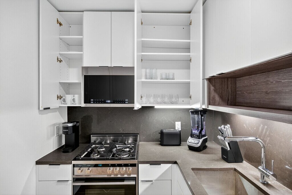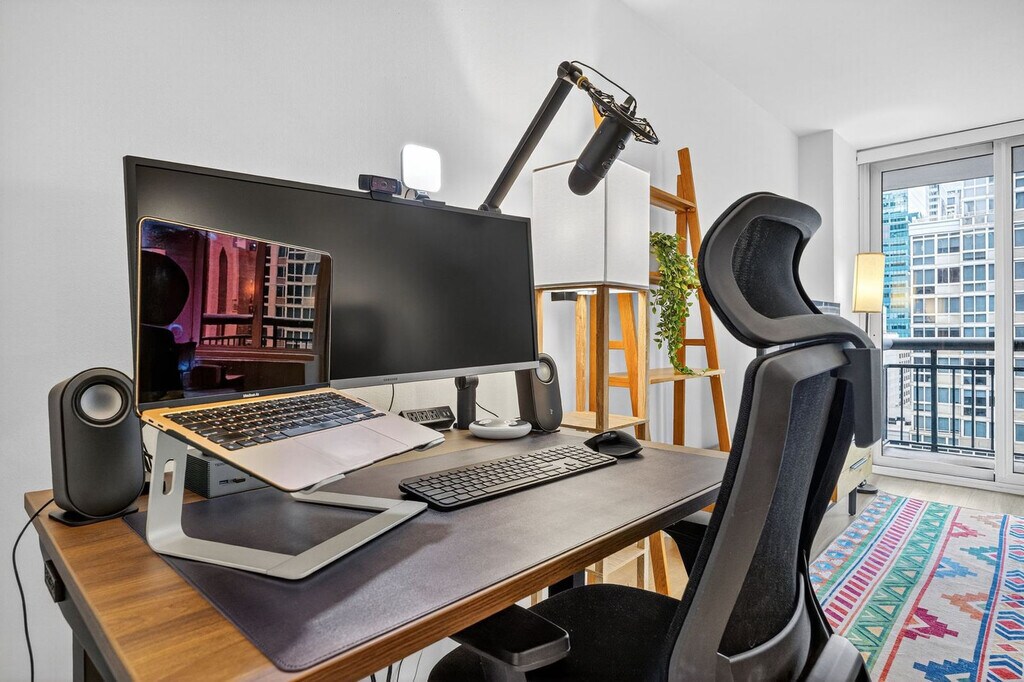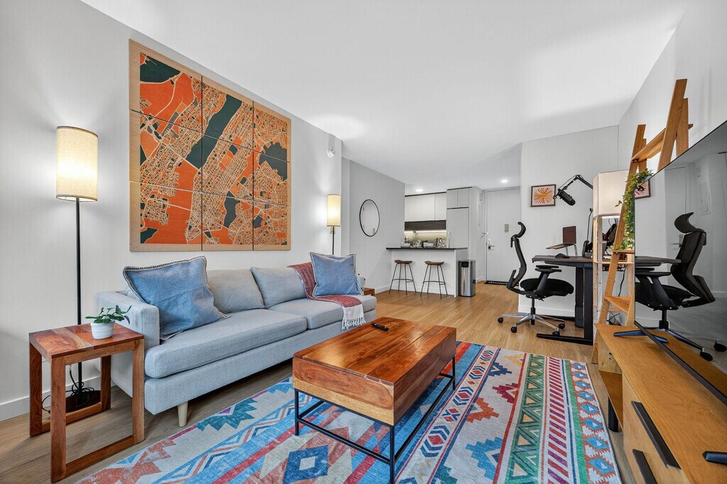 Experience modern luxury and feel at home in this 1-bedroom apartment in the vibrant center of Midtown, Manhattan. With the city’s most famous sites just steps from your door, enjoy a comfortable, upscale lifestyle in one of the most exciting cities in the world. This apartment at Hollingsworth offers a one-of-a-kind combination of practicality and indulgence. It is custom designed for the remote worker looking for an inspiring environment in which to be productive and includes a fully equipped kitchen with a breakfast bar, a full bathroom, a private balcony, a smart TV, and all utilities. Amenities include in-unit laundry, air conditioning, sound protection windows, a 24-hour doorman, valet laundry service, on-site management, a landscaped rooftop terrace with fountains, a fireplace and grills, a sky lounge with gaming tables and a catering kitchen, a 24-hr fitness studio with Peloton bikes, a co-working lounge, and common area Wi-Fi. Take a stroll through nature in beautiful Bryant Park, head over for a burger with friends at Shake Shack, or spend an afternoon shopping at Macy’s. Only a few blocks from the Empire State Building, Whole Foods, Penn Station, and 7 subway lines, you’ll have incomparable access to anything you want in Manhattan and beyond. Internet speeds are not guaranteed and may fluctuate based on your computer model and the router location. The A/C runs from May to October, and the heating system works from November to May. These settings are controlled by the building management. Includes private high-speed internet, a standing desk (Uplift), an ergonomic work chair (Uplift), a 34-inch ultra-wide monitor (Samsung), a microphone (Blue Yeti), a webcam (Logitech), computer speakers (Bose), an LED streaming light, a green screen, a keyboard (Logitech), a mouse (Logitech), a laptop stand and a TOTU 16-in-1 Triple Display USB-C 3.1 Docking Station. A laptop computer is not included. Partners reserve the right to conduct secure ID verification, background checks and request Proof of Income. Guests will have 24 hours to complete these steps. Booking confirmation is contingent upon the successful completion of these checks, as well as meeting the minimum eligibility requirements. [SI]