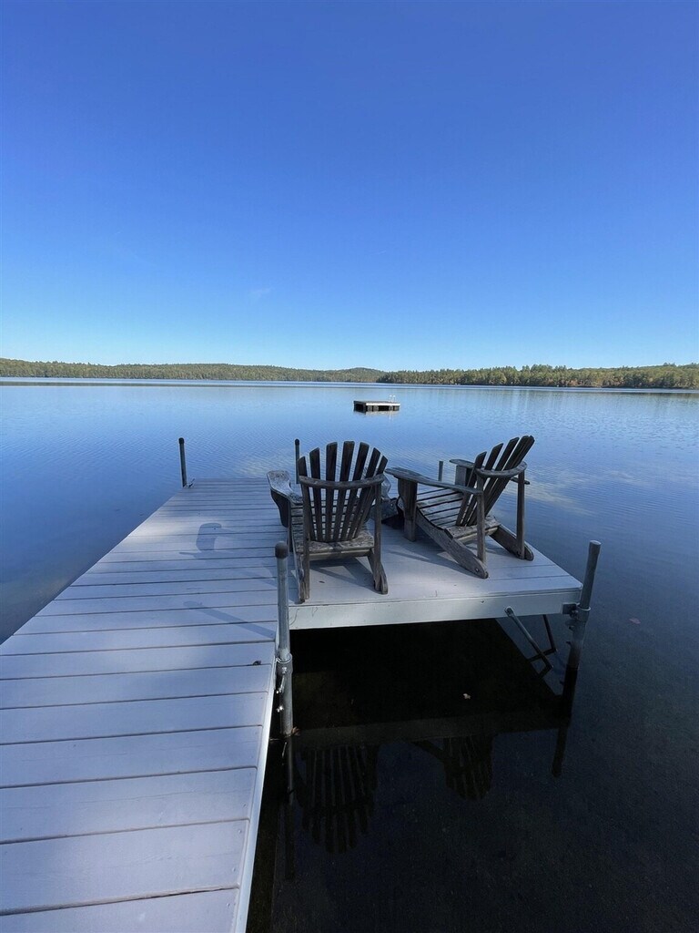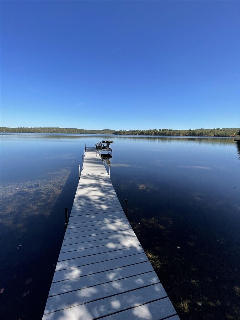 Welcome to this charming 1-bedroom, 1-bathroom cottage on the shores of Peabody Pond, where you can feel at home surrounded by nature's beauty. This cozy retreat offers a serene escape with its private location right at the water's edge, providing stunning views and the soothing sounds of the brook that borders the property. The cottage features a screen porch, a large stone fireplace, and an open living and dining area, making it a perfect getaway spot. The cottage is thoughtfully designed with a well equipped kitchen, a lovely view, and a relaxing atmosphere. Enjoy the convenience of internet access and a phone for local and emergency calls. The property includes a nice dock and swim float, along with two 8ft kayaks for your enjoyment. Please note that guests must provide their own life jackets. One pet is welcome with a $125 fee, but please ensure no dogs are on the furniture. Linens and towels are not provided, but are available to rent at our office. The property also includes a small portable fire pit and a canoe for your use, though guests must provide their own life jackets. Nestled just steps from the shore, this cottage offers a level lot with sandy bottom frontage, perfect for swimming and water activities. The area is ideal for nature lovers, with the cry of the loons and beautiful sun and moon rises enhancing the tranquil setting. This property has an occupancy limit of 5 guests. Smoking is not allowed, and the use of jet skis or personal watercraft is prohibited. The cottage is equipped with a TV and DVD player, and the owner provides a DVD library for entertainment. [SI]