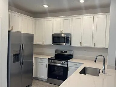 Property Id: 1736734 3 Bed, 2.5 Bath and one car garage. Included features: Kitchen white cabs/ with white Quartz counter tops, 42'' cabinets. Frigidaire stainless steel appliances (range, dishwasher, microwave, and refrigerator), Quartz vanities, ceramic wood tile in wet and main areas (living/dining, halls), water heater, pre-wired security system, screened lanai, window blinds throughout, sprinkler system, and paved driveway. Breakfast Bar, Breakfast Nook, Eat-in Kitchen, Kitchen Island, Pantry, Primary Bathroom - Shower No Tub, Smart Thermostat, Walk-In Closet(s) Flooring: Carpet, Tile Neutral colors throughout. Convenient to the shopping, dining and entertainment opportunities in Jacksonville, as well as prime location close to the JTB, downtown ,Wolfson Highschool and avenue mall . Basic Internet is included with the rent .