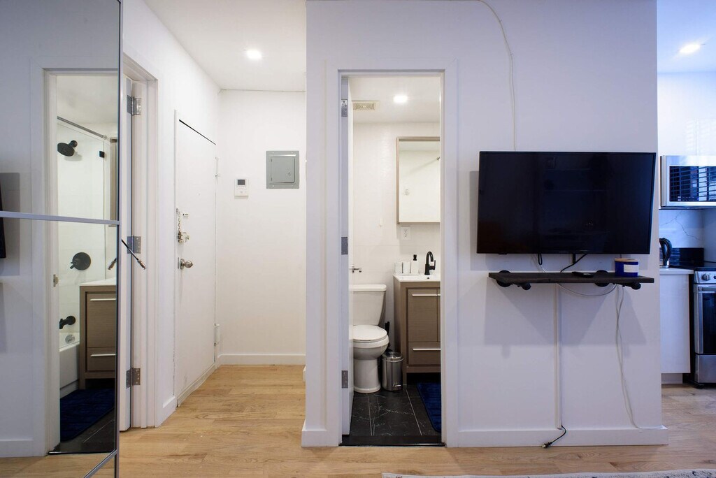 Welcome to your perfect Manhattan retreat! This fully furnished 1-bedroom apartment offers a blend of comfort, style, and convenience in a boutique walk-up building. Located in the heart of the Lower East Side, you’ll be just steps away from Soho, top restaurants, bars, coffee shops, and shopping stores. The apartment features hardwood floors, a comfortable marble bathroom with a standing shower, a spacious living room with a full-size sofa, a 48' smart TV, and high-speed Wi-Fi. The warm and cozy kitchen is equipped with a full-size fridge, oven, stove, microwave, and dishwasher, perfect for preparing meals and snacks. The bedroom has a full-size bed with a memory foam mattress for restful sleep. This secure boutique building offers a safe and quiet walk-up residence in a prime location, close to everything, including subways, cafes, restaurants, grocery stores, theaters, gyms, shopping, music shops, and NYU hospitals. This brand new apartment in the Lower East Side of Manhattan offers guests the chance to stay in comfort and style. The modern and sleek design of the space provides a comfortable and inviting atmosphere. The living room is equipped with a comfortable workspace, a 4K UHD SmartTV, and an XL closet for your convenience. The fully accessorized kitchen features all the necessary appliances and cookware for your convenience. The apartment is fully furnished with all new furniture, making it move-in ready, and guests will receive clean linens and towels upon arrival for added comfort. Under 15-pound dogs are allowed with owner approval and a $350 pet fee. Only one pet is allowed. Lower East Side is the most vibrant Manhattan neighborhood of New York, with plenty of restaurants, cafes, bars, galleries, and shops. Walk to SoHo or over the spectacular Manhattan Bridge. The LES of Manhattan is full of history and culture, making it one of the most interesting parts of NYC. Packed with hipster-baiting cafes, galleries, and shops on every corner, the artistic and bohemian spirit that characterized the neighborhood persists, and everything from the coffee shops to the bars has a unique and creative edge. There are endless things to do and see here! F, M, J, and Z subway stations are within short walking distance. New York City's heating season is until the end of May. Beginning around mid-April, window air conditioning will be installed in the apartment. Guests can contact the host for any problem or question they may have, and any issue will be handled personally by the host or their team. Personal check-in and welcome home tour are provided to every guest, with remote check-in also available for COVID safety. No smoking and no parties are allowed. Please keep quiet and respectful for your neighbors and follow trash recycle rules. The living room is equipped with a comfortable workspace and high-speed Wi-Fi throughout the apartment. A laptop computer is not included. [SI]