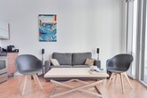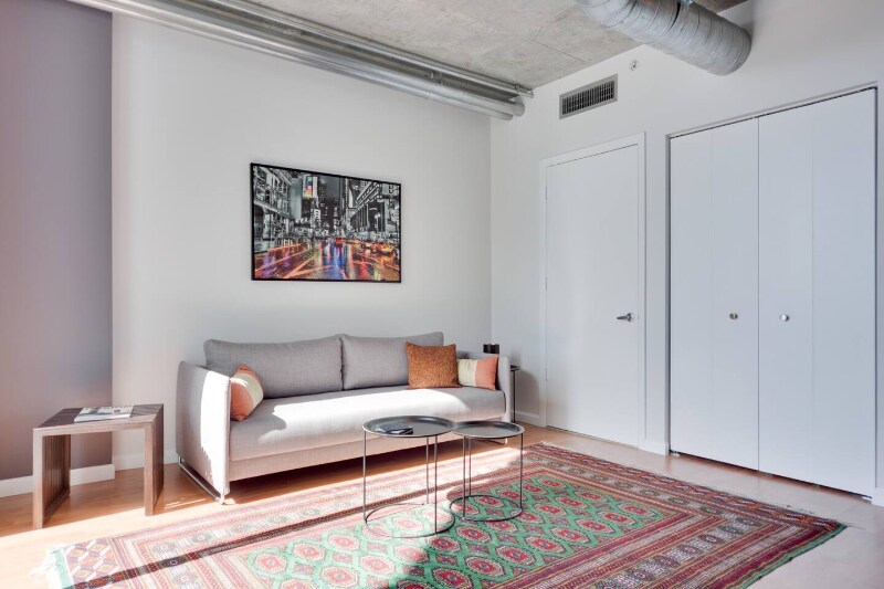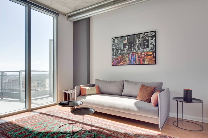 Property Id: 803497 Beautiful, large upper penthouse LOFT - $3800/mo available JUNE 1st. This is a completely open-floor-plan loft with 20ft floor-to-ceiling windows and lots of light. Perfect corporate housing. Includes 1 parking space. Sweeping views of Biscayne Bay and Brickell living. NO PETS. SEE Important note about SERVICE ANIMALS*. Prime location at City Center. 1 Queen bed, 1 Queen Sofa Sleeper, 2 full baths, Large balcony, Pool Gym, Sauna, Jacuzzi. Assn: requires a background check and application. *Due to severe, lifelong allergies, I can only accommodate guests without animals of any type so that I can guarantee my own health and safety. The loft is 2 bed, 2 bath with a large balcony. 1,150 square feet over 2 floors 1st floor kitchen, living room, full bath, washer/dryer + balcony. The sofa in the living room is a queen sofa sleeper. This is a loft. It is entirely open throughout. The 2nd floor is 1 bed, 1 full bath, a den, a seating area, and a desk.