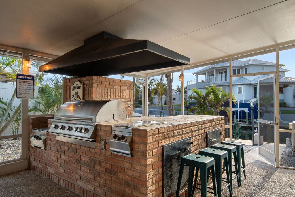 Gather your loved ones and prepare for an unforgettable Florida getaway at Bayshore Surprise! This exquisitely remodeled home epitomizes coastal Florida living, offering high-end finishes, top-tier amenities, and a serene environment to relax and unwind. Whether you're lounging by the pool, enjoying the built-in wet bar, or exploring the nearby Sarasota Bay, this ground-floor retreat has everything needed for the perfect vacation. This home features three beautifully designed bedrooms and two modern bathrooms. The large screened-in pool with a spacious deck and relaxing outdoor lounging area invites you to unwind. The fully equipped kitchen with stainless steel appliances and an outdoor BBQ area with a built-in gas fireplace, side and power burners, sink, and full-size refrigerator make it a dream for any home chef. The cozy living area with a TV and fast WiFi ensures entertainment and connectivity. Bayshore Surprise is ideally located six miles south of downtown Bradenton in a quiet and scenic neighborhood just 100 yards from Sarasota Bay—a paradise for fishing enthusiasts! The house is located next to the Bayshore Gardens Park and Recreation District, which has picnic tables, sports facilities, a playground, and bay access. Nearby attractions include the De Soto Heritage Festival, Riverwalk in Downtown Bradenton, and the Sarasota-Bradenton International Airport, just 4.5 miles away. Check-in time is 4:00 PM and check-out time is 10:00 AM. Quiet hours are from 10:00 PM to 8:00 AM, and noise must be kept below 65 db during these hours. No smoking is allowed anywhere on the premises. Guests must be 21 or older to book, and those under 21 must be accompanied by a parent or guardian. The home is equipped with smoke detectors, a carbon monoxide detector, and a fire extinguisher for safety. No prom, graduation, or other large parties or events are permitted, and the maximum number of guests must not exceed the sleeping accommodations for 8 guests. A noise detector is installed to ensure noise levels do not disturb neighbors. The boat lift, kayaks, and hot tub are not included in the rental, and a maximum of one boat is allowed. [SI]