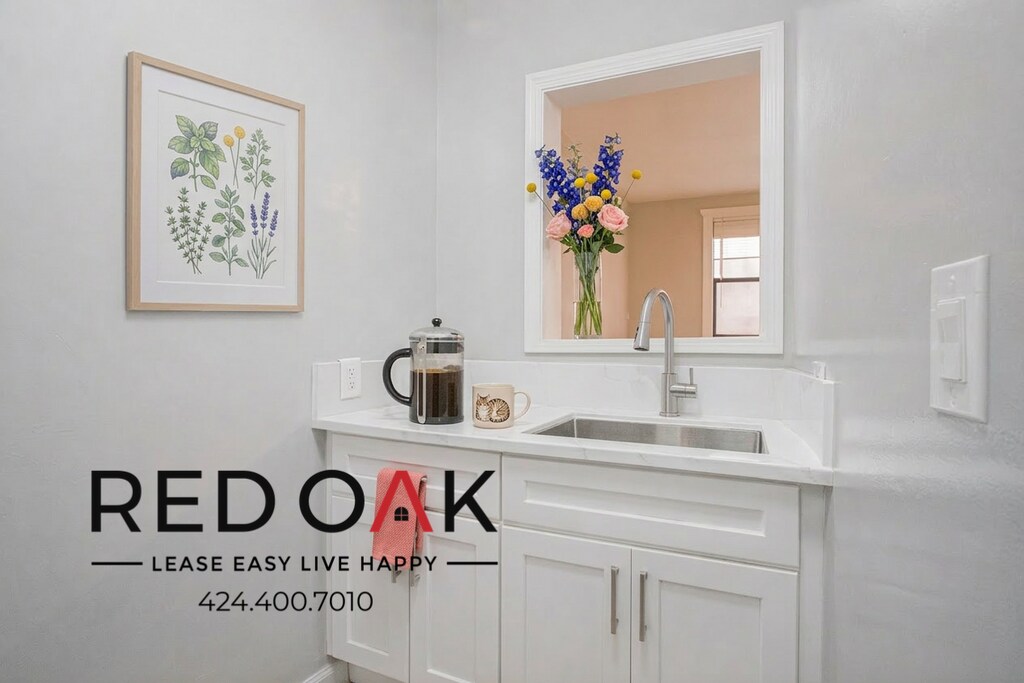 ~6 Weeks FREE~ Welcoming Studio with Contemporary Lighting, Kitchen Appliances, Hardwood Style Floors, and On-Site Laundry ~ In Prime Central Westlake! *MOVE-IN SPECIAL* **Resident will receive a one-time credit of 6 Weeks FREE off of the Market Rent Price of $1,245, on approved credit. The net effective rent shows the savings over the entire 12-month lease term. The advertised price is based on the NET EFFECTIVE RENT.* Key Features: ~ Bright & Airy: Sunny windows bring in natural light and highlights hardwood style floors. ~ Storage: Spacious walk-in closet keeps you organized. ~ Temperature Control: Efficient gas furnace for cozy winters. ~ Cozy Kitchen: Quartz counters, breakfast bar, and stainless steel appliances. ~ Refreshing Bath: Well-lit mirror, vanity cabinet, and soaking tub. ~ Utilities Included: Water, sewage, and trash covered. ~ On-Site Laundry: Convenient for daily chores. ~ Central Westlake: Near restaurants, shopping, parks, and easy freeway access (101, 110, 10). ~ Don't miss out on the opportunity! Available for an immediate move-in. Call to schedule a viewing today! LEASE TERMS: One Year Lease Photos may not reflect the exact available unit. Availability is not guaranteed—please verify all details. Square Footage is approximate. Street Parking only. Showings may not be 1-on-1. Listed pricing and special offers are only valid for new residents. Pricing and availability are subject to change without notice and may vary between similar units. Red Oak does not warrant or represent that image renderings on this website are an accurate representation of every floor plan available at the Property. Floor plans may vary unit by unit and by location at the Property. Please contact the Leasing Office to schedule a tour of the Property and the particular unit you are interested in. Pricing and availability are subject to change at any time. **All applicants receive equal consideration; we follow all Fair Housing laws.*