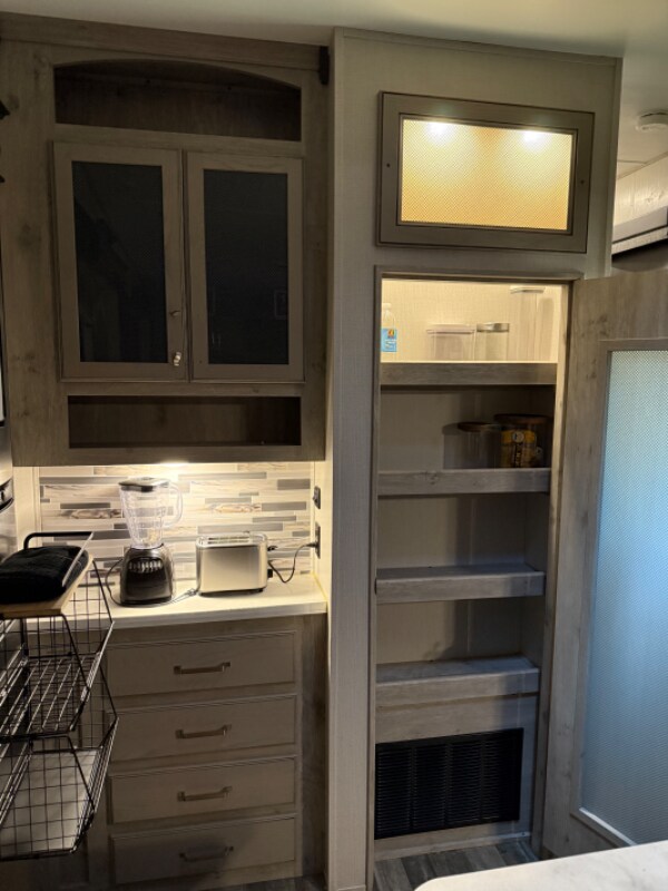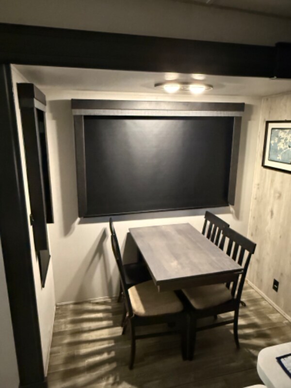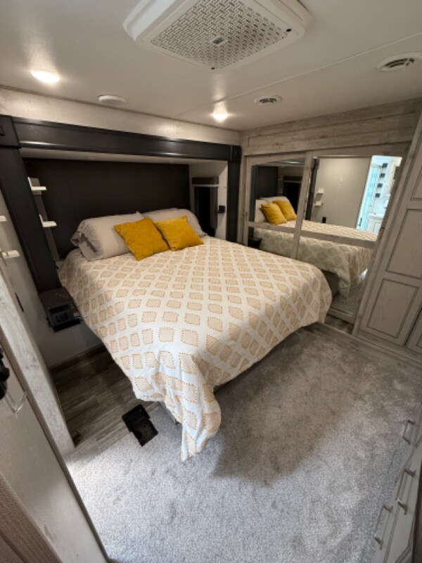 Property Id: 2199855 Beautiful modern space with 4 slide outs. Large kitchen for cooking and relaxing living space with fireplace and theatre seating with heat and massage. Intergraded charging ports on both sides of the couch that also folds into a queens size been. Tons of storage space below unit and its climate controlled.