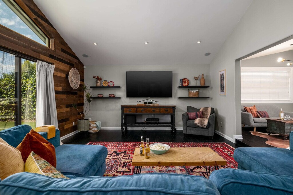 Welcome to this modern and updated 4-bedroom, 2-bathroom family home located in a prime San Diego location. With a modern open layout, this home features a fully equipped and stocked kitchen, a large backyard with a spa and pool table, high-speed internet, dedicated parking, and a home gym in the garage. Enjoy the comfort of central AC throughout the home. This spacious home comfortably sleeps 10 guests. The first bedroom features queen-over-queen bunk beds, a closet, and sliding doors that open to the backyard patio. The second bedroom includes a queen bed, a workspace with a desk and chair, a closet, a smart TV, and sliding doors leading to the patio. The primary suite offers a king bed, a cozy sofa, a smart TV, two large closets, and a beautifully lit ensuite bathroom. The fourth bedroom provides a queen bed, a smart TV, and its own private patio. The living room boasts a cozy open layout with a large custom couch, an oversized smart TV, and plenty of natural light. The dining area seats six comfortably, with additional bar seating in the kitchen. The fully equipped kitchen includes a dishwasher, coffee maker, and all the essentials for preparing meals with ease, making you feel right at home. Pets are allowed only with prior approval. Unapproved pets will result in fines and additional cleaning fees. Located just 5 minutes from Grossmont Center, 10 minutes from La Mesa Village and Farmers Market, and 15 minutes from Mount Helix, this home is perfectly situated for exploring San Diego. Enjoy local breweries and dining options within 10 to 20 minutes. Nearby attractions include Mount Helix, La Mesa Village, Lake Murray, Mission Trails Regional Park, Harry Griffen Regional Park, and the La Mesa Depot Museum. Quiet hours are from 10:00 PM to 8:00 AM. The total number of guests must not exceed what is listed on your reservation, including children and infants. Up to three additional daytime guests are allowed but must leave by 10:00 PM. Any overnight guests not listed on the reservation or anyone staying past 10:00 PM will incur a $100 per person, per night fee. Smoking of any kind is strictly prohibited inside or outside the home, with violations resulting in a minimum $600 odor removal fee. Parties, events, or large gatherings are not permitted. Check-in is at 4:00 PM and check-out is by 10:00 AM. Late check-outs without prior approval will result in additional charges. A $150 cleaning fee may apply if the home is left excessively dirty. Open flames and candles are not allowed inside. Children must be supervised at all times, especially near gym equipment, the spa, and fire pit. Use the home gym at your own risk and wipe down equipment after use. Please lock all doors and windows when leaving the home. If any damage occurs during your stay, notify us immediately. The second bedroom includes a desk and chair for a convenient workspace, complemented by high-speed internet throughout the home. Registration Number: STR-12120L [SI]