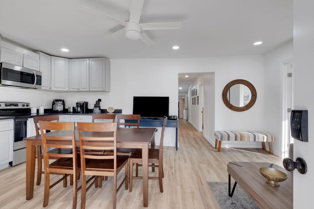 Welcome to your stylish Nashville escape! Feel at home in this modern 3-bedroom home in Nashville’s peaceful Donelson neighborhood, just minutes from downtown attractions. This fully equipped home offers cozy bedrooms, sleek bathrooms stocked with towels, soap, shampoo, and conditioner, and an inviting living space with comfortable seating and a large flat-screen smart TV. The modern kitchen is fully equipped with a refrigerator, oven, microwave, coffee maker, pots, pans, and utensils. Enjoy the convenience of a washer and dryer with detergent and fabric softener. Enjoy the private outdoor space perfect for morning coffee or evening chats under the stars. High-speed Wi-Fi is available. Baby items are available upon request at least 48 hours before arrival. Located in the charming and family-friendly Donelson neighborhood, this home offers a serene escape while keeping you close to Nashville’s vibrant attractions. The neighborhood is ideally positioned just 10 minutes from the iconic Grand Ole Opry and Opry Mills Mall, 15 minutes from the bustling Broadway district, 15 minutes from the Country Music Hall of Fame, 10 minutes from Nashville International Airport (BNA), and 5 minutes from Two Rivers Park. Donelson boasts a delightful mix of local coffee shops, unique eateries, and a welcoming, laid-back atmosphere. Quiet hours are between 10 PM and 9 AM. If there are additional guests, they must be disclosed to the host in advance. No smoking or vaping is allowed inside or on balconies, and there is a $300 cleaning fee for violations. Pets are allowed only with prior approval and incur a fee of $50 per pet per stay; unauthorized pets incur a fee of $100. There is a $50 per person per day fee for extra or unregistered guests, and a $55 per hour fee for late checkouts (after 15 minutes). A lost key, fob, or parking pass incurs a fee of $200. An unauthorized event incurs a fee of $500, and an unauthorized wedding or filming incurs a fee of $2,000. [SI]