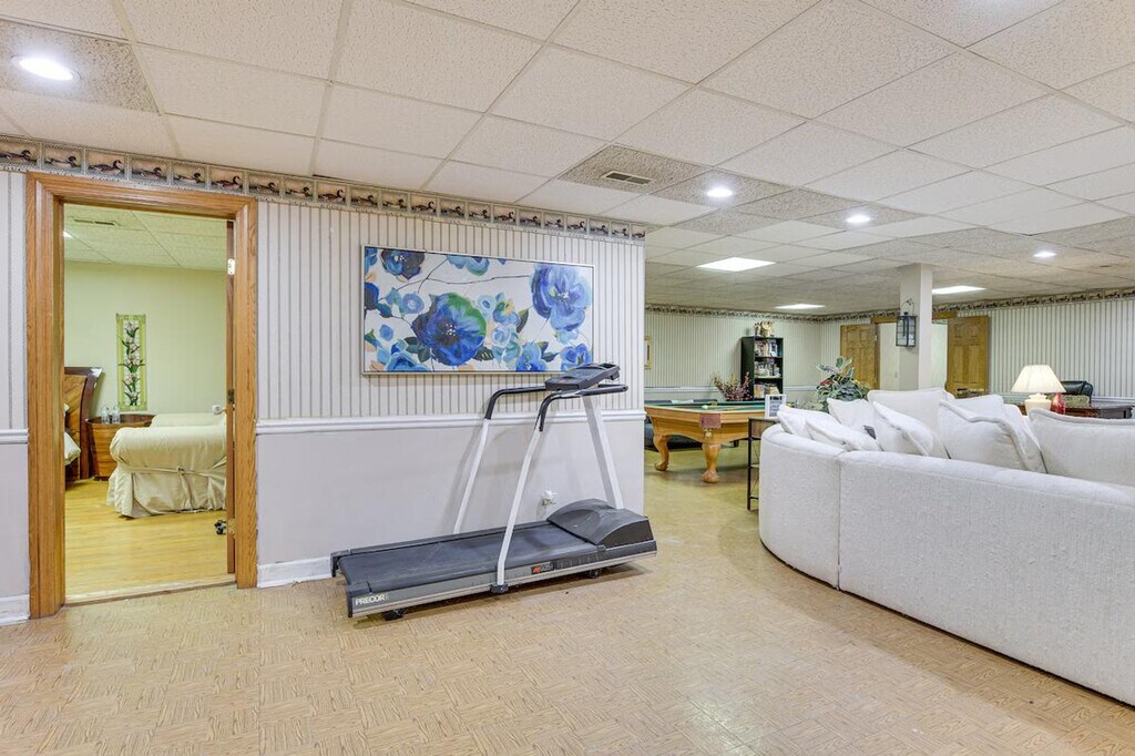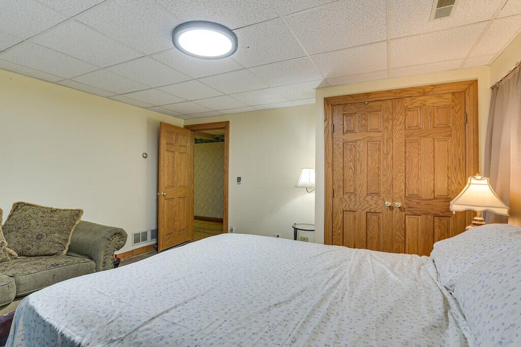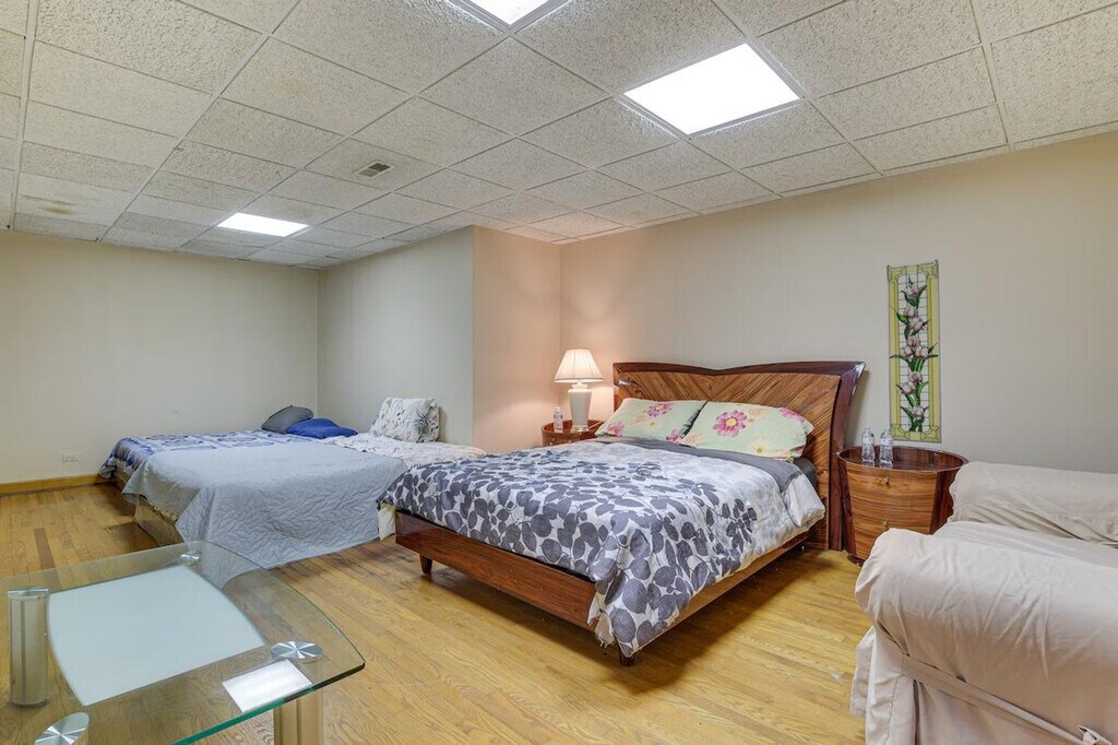 Experience the best of Barrington Hills with this serene 2-bedroom, 1-bathroom apartment, offering 1,400 sq ft of comfort. Nestled on spacious grounds, this inviting rental provides open-air lounge spaces, a bright living area, and a fun-filled rec room with a bar and pool table. Situated just 3 miles from The Arboretum, this apartment offers easy boating access and a chance to feel at home amidst nature. This apartment features a shared outdoor living space on 6 acres, including a fishing lake (no swimming), a small boat, a private deck, a spacious yard, a playset, a pergola, and a fire pit. Inside, enjoy a pool table, a laptop-friendly workspace, a treadmill, a smart TV, books, a fireplace, and a wet bar. The kitchen is fully equipped with a stove, oven, refrigerator, kettle, Keurig coffee maker, cooking basics, and a dining table with a high chair. Parking is available with a garage accommodating 2 vehicles and a shared driveway for 10 vehicles. RV parking is also allowed on-site. Located in Barrington Hills, known for its sprawling estates, preserved natural spaces, and rich equestrian heritage, this apartment offers proximity to The Arboretum and easy access to boating. Enjoy the tranquility of the neighborhood while being close to local attractions. The apartment is a single-story lower-level unit requiring 1 exterior step and interior stairs to enter. The homeowner resides on-site in a separate upper-level unit with access to shared amenities and may be present during your stay. No smoking, pets, events, parties, or large gatherings are allowed. The property features 4 exterior security cameras for your safety, actively recording video and sound without intruding on interior spaces. Guests must be at least 18 years old to book, and additional fees and taxes may apply. A photo ID may be required upon check-in. Includes a laptop-friendly workspace with free WiFi, ensuring a comfortable remote work-friendly environment. [SI]