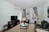 Feel at home in this charming Upper West Side 1-bedroom, 1-bathroom furnished apartment. This centrally located home is on the 3rd floor of a walk-up building. Enjoy quintessential Upper West Side living in a renovated, historic brownstone. This bright and airy home overlooks a serene, quiet backyard. Northern exposure creates a bright, airy ambiance with unmatched elegance throughout all seasons. This spacious home is laden with pre-war charm such as high ceilings, hardwood floors, and abundant closet space, while complemented by modern necessaries such as Wi-Fi and a smart TV. There’s a fully functional, modern kitchen with an oven, countertops, large fridge, pots, plates, and utensils. Coin-operated laundry is available in the basement. The apartment is ideally located just down the block from Central Park, surrounded by a plethora of gourmet eateries, restaurants, shopping, and museums. Transportation is made simple via subway lines B/C and crosstown buses 1 block away. [SI]