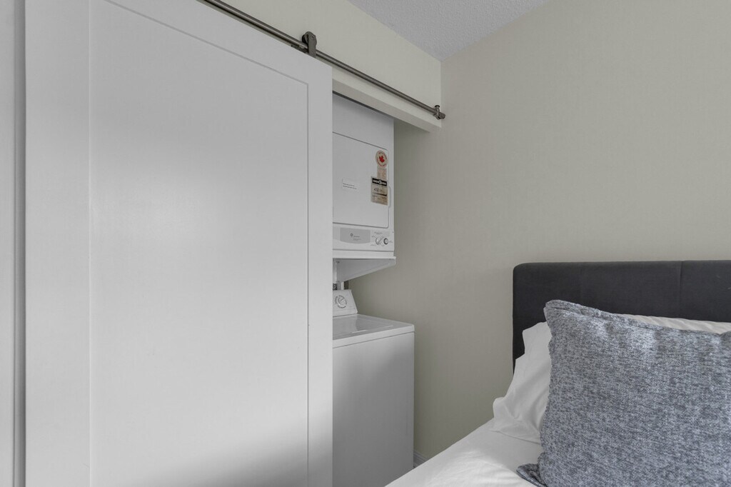 The advertised rate of C$7,646/month is the lowest available price, based on a 30 day(s) stay with a move-in date of July 6, 2026. Rates vary depending on the duration of stay, season, and other parameters. For exact pricing and additional pricing components, please visit our website and enter your desired move-in and move-out dates. The rate is applicable when billed upfront; it can be higher if billed in multiple payments. Feel at home in this unit located in trendy King West, close to Liberty Village, Downtown, Island Airport, China Town, King West Village, and Queen Street Fashion. This unit is perfect for couples, solo adventurers, business travelers, and families. This suite features high-speed Wi-Fi, a smart HDTV, hotel-quality sheets, duvets, and towels. The kitchen is fully equipped with appliances, including a fridge and stove. A washer and dryer are also in the suite for guests to use. One parking space is provided at no extra charge, suitable for mid-size or smaller vehicles. Late checkout beyond the scheduled check-out time will incur fees of $50 per hour, unless a different time has been agreed upon. King West is a premier neighborhood with fashion, restaurants, and nightlife. It's close to grocery stores, Liberty Village, Downtown, Island Airport, China Town, King West Village, Queen Street Fashion, and sporting events. Smoking is strictly forbidden anywhere on the property, and failure to comply may result in a penalty up to $1000. No more than the stated number of guests in the reservation may stay overnight, unless agreed otherwise. Pets, parties, and illegal drugs of any kind are not allowed anywhere on the property (inside or outside). [SI]