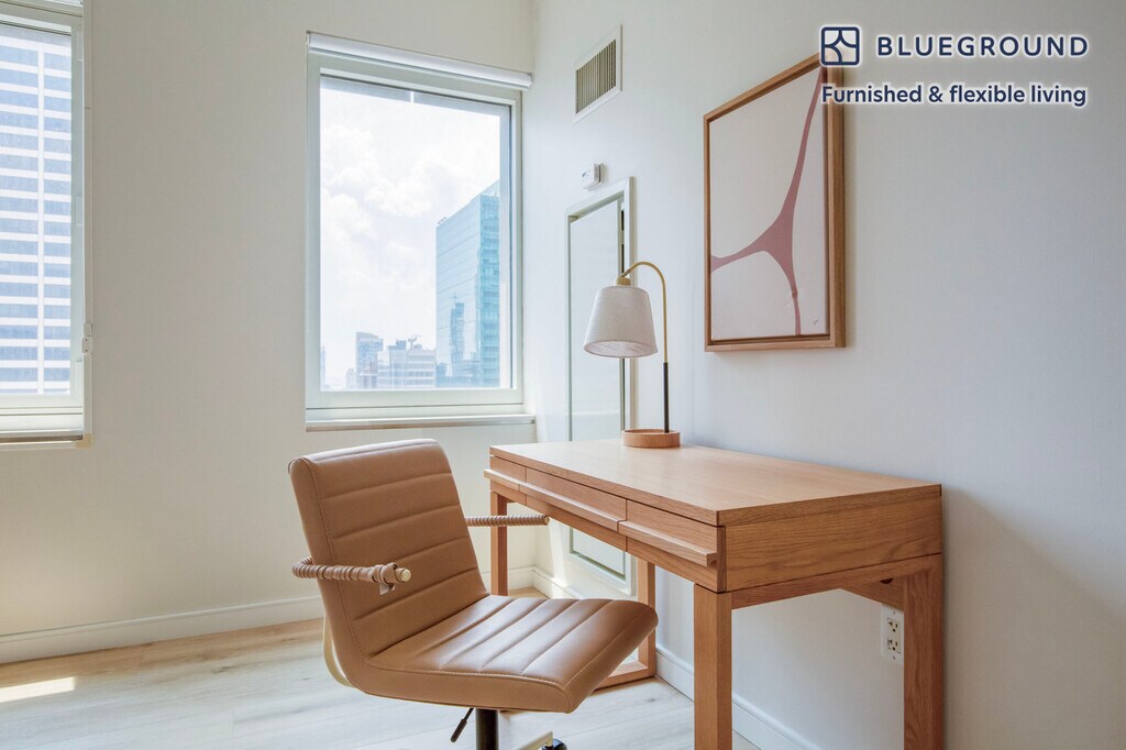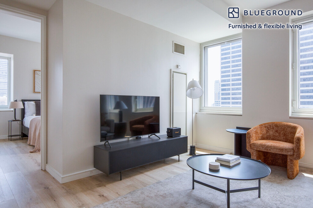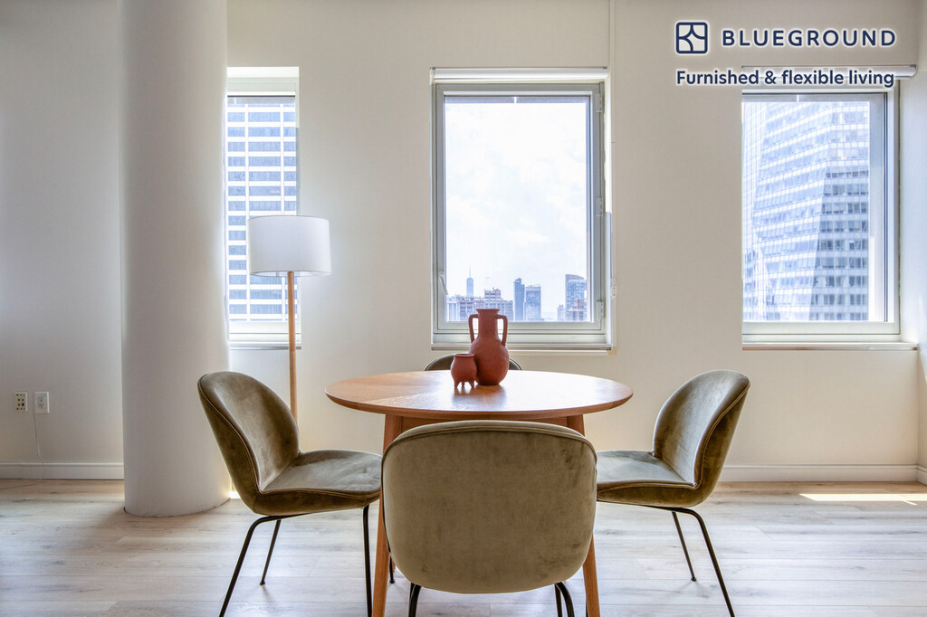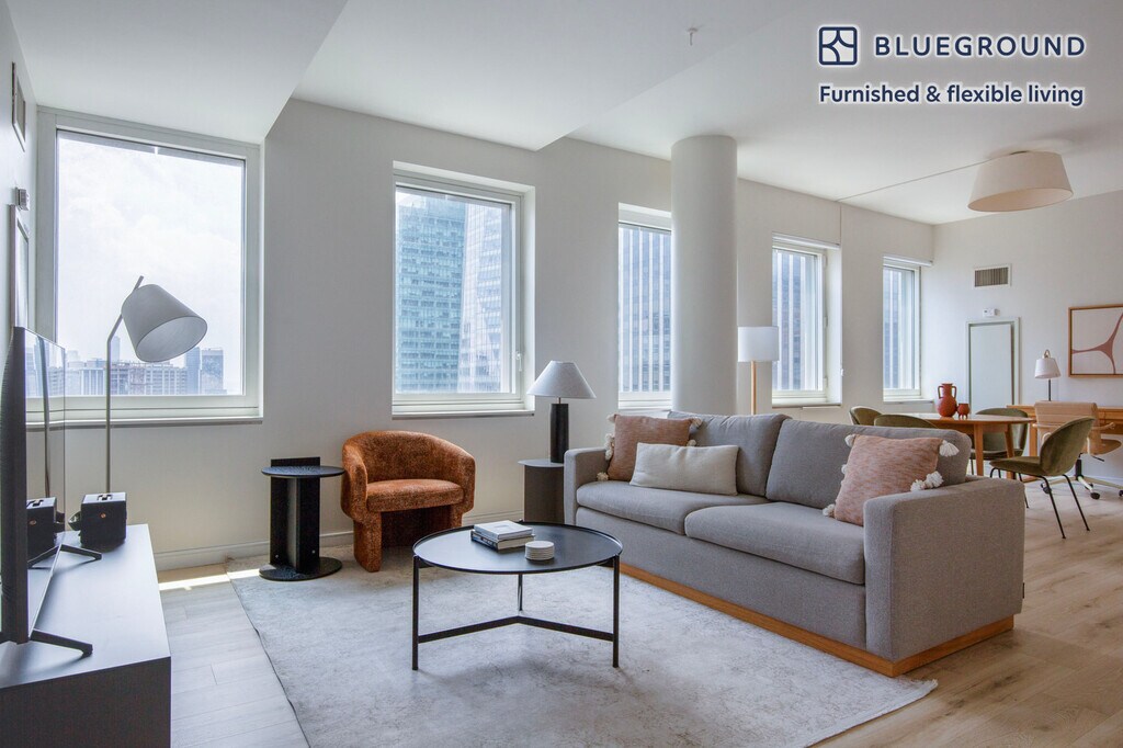 Show up and start living from day one in New York with this pretty two bedroom Blueground apartment. You’ll love coming home to this thoughtfully furnished, beautifully designed, and fully equipped Midtown South home with stunning high floor views over the city. (ID #NYC1502) The advertised rate of $9,480/month is the lowest available price, based on a 12 month(s) stay with a move-in date of May 2, 2026. Rates vary depending on the duration of stay, season, and other parameters. For exact pricing and additional pricing components, please visit our website and enter your desired move-in and move-out dates. The rate is applicable when billed upfront; it can be higher if billed in multiple payments. Brokers are welcome to reach out. Were you looking for an unfurnished lease? Try Blueground instead and upgrade from unfurnished to furnished living: - Furnished at rates comparable to unfurnished - No setup or furniture costs - save thousands - Move-in ready - save time, just bring your suitcase Designed with you in mind Thoughtfully designed with bespoke finishes, modern furnishings, and a fully equipped kitchen, you’ll enjoy that “I’m home” feeling with this Blueground apartment. Whether you’re lounging in your stylish living room streaming the latest and greatest entertainment on the smart TV or premium wireless speaker, or getting some well-earned rest on the superior quality mattress with fully stocked linens, you’ll fall in love with everything this Midtown South apartment has to offer. This apartment also offers in-apartment laundry. Sleeping arrangements Queen Bed, 63in/160cm Queen Bed, 63in/160cm Amenities Building amenities unique to this two bedroom apartment include an on-site: - Doorman - Dryer - Elevator - Washing machine - Pets allowed Arrival and ongoing support The entire apartment is yours to enjoy! Throughout your stay, you’ll have access to our Client Experience team through the Blueground App. You can schedule additional cleanings, submit maintenance requests, and view our neighborhood recommendations with just a few taps. We’ll share all details upon confirmation of your stay. Ideally Located This furnished apartment is located in Midtown South, the city’s high tech sector. Midtown South is generally used to refer to the portion of Midtown that is below 42nd Street. This central location allows residents to be just a short walk or ride away from some of the city's most famous landmarks and institutions. For instance, the Main Branch of the New York Public Library and the iconic Empire State Building. For a breath of fresh air, visit Bryant Park - known as Manhattan’s Town Square. The gorgeous residential high-rises in this neighborhood offer spectacular city views. Other things to note Building amenities may have an extra cost. This Blueground apartment has flexible lease options, allowing you to book it for one month, a year, or more. Pets are welcome, though weight limits and breed restrictions apply and may incur fees. Brokes CYOF. We take great pride in ensuring every photo displayed is shot in our own units with our actual furnishings. That said, we regularly refresh our decor and furniture arrangement, which may differ from what’s pictured. [SI]