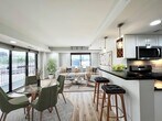 Modern elevator building 3 bedroom, 2 full bathroom condo with 24hr concierge, that will take and hold all of your Amazon packages, Uber Eats and the like along with a private resident shuttle that picks you up and drops you off right at the PATH making your life super easy and convenient! This gorgeous 10th floor corner home with large private balcony is flooded with light and where you can enjoy a lovely sunset as well as very nice partial NYC views. This home has beautiful updates such as the recently installed 7 inch plank flooring throughout; Whirlpool stainless steel appliance package with gas stove/oven, refrigerator, dishwasher and microwave; granite countertops and subway tile backsplash with under cabinet lighting; LED recessed lighting, new pendant lighting and new lighting in both bathrooms. You have 3 good sized separate bedrooms, all with large closets including a walk-in closet. The home also comes equipped with central air and heat and a full sized, front loading washer and dryer in your home! Just steps from the 2nd St Light Rail or use the complimentary resident shuttle to the PATH. The Southwest Park is right around the corner with Pickleball courts. Onsite you'll find a grocer/deli as well as garage parking & SkyClub Fitness and Spa which are both available for an extra fee. Enjoy all the perks, ease and safety of a concierge building with a the modern updates and floor plan for an awesome Hoboken living experience!