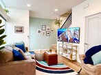 Explore vibrant Capitol Hill from this centrally located 4-story townhome, including the rooftop, with no step at the entrance. Feel at home in this 2-bedroom, 2-bathroom home, offering 970 sqft of living space. The first floor features a living room with a queen sofa bed and a 58'' Smart TV, along with a kitchen and dining area. This level is air conditioned. The second floor includes a yellow bedroom with a queen bed, a hallway bath with a bathtub and shower combo, and laundry facilities, with heat only. The third floor offers an orange and blue room with a queen bed, a 50'' Smart TV, and an en-suite bathroom with a shower. The kitchen is fully stocked with appliances, cookware, silverware, servingware, spices, Keurig coffee and tea. All beds are outfitted with high-quality mattresses, linens, and a comfortable duvet. Enjoy high-speed internet (up to 400 mbps) and an on-site washer and dryer. Well-trained pets are welcome at $50 per pet. Located one block away from dining, shopping, and nightlife in Capitol Hill, this home is less than a 10-minute walk to the Link Light Rail Capitol Hill Station, providing access to other areas in Greater Seattle. Downtown Seattle is a 5-minute drive away, and Volunteer Park is just 3 blocks away. With a Walk Score of 96, a Transit Score of 79 (9-minute walk to Caphill Link Light Rail), and a Bike Score of 88, this location is ideal for exploring the city. This is a pet-friendly home, but please refrain from allowing pets on furniture or linens, and do not leave pets unattended. Please bring poop bags and clean up after your pets. There are strictly no parties or events, quiet hours are between 10 pm and 8 am, and there is no smoking or vaping of any kind anywhere on the property, including outdoor areas. Digital piracy and shoes in the home are prohibited. There is a $500 fine per violation. Free street parking is available with a city-issued guest parking permit. Paid public parking is available directly across the street from the townhome complex for a guaranteed spot. Registration Number: STR-OPLI-23-000490 [SI]