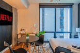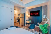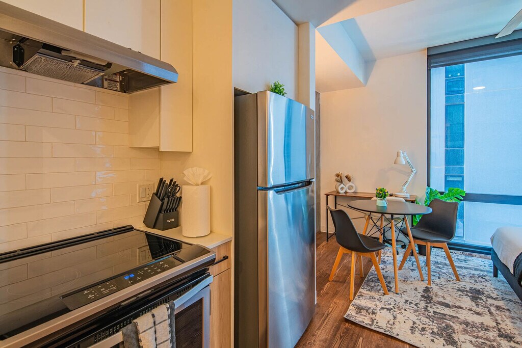 Relax and recharge in this stylish high-rise studio located in the heart of Phoenix. Step outside and you’re just moments from award-winning restaurants, unique boutiques, historic landmarks, and the city’s top attractions. With this unbeatable location, exploring Phoenix and beyond is effortless. After a day of adventure or business, return to your cozy retreat and unwind in comfort. This studio unit offers a socially and environmentally conscious living environment, along with top-notch customer service and unparalleled amenities. The living space features an innovative open-concept design that blends the living and dining areas with the kitchen, creating a modern and sleek living experience. Enjoy a 4K 55" HDR Smart TV, coffee table, microwave, stove, oven, refrigerator/freezer, dishwasher, toaster, coffee maker with essentials, electric kettle, and a dining table with chairs. The sleeping area includes a queen bed with pillows, linens, and sheets, and an office desk with a chair and reading lamps. The inviting full bathroom is completely private and stocked with all essential toiletries. Comes with one garage parking nearby. Additional parking spots may be near the property or on the street. Pets are allowed depending on size or if they are service animals, with an additional cleaning fee of $20 per night. There is a two-pet maximum and only cats and dogs are allowed. If you are found to have brought pets without prior notification, there will be a $500 fee. The safety and well-being of our guests are of utmost importance, and we use a thorough cleaning process after each check-out. Guest verification is required, including providing a copy of your official government-issued photo ID, confirming your contact information, and providing a valid credit card with a name that matches your ID. You may also be required to undergo a background check if mandated by the property management company or the building. Check-in instructions might be withheld until you have successfully completed our verification portal. Noise monitors are installed in the unit to measure noise levels in decibels. If tampered with, there will be a fee. Security cameras are installed in the hallways for security purposes. [SI]
