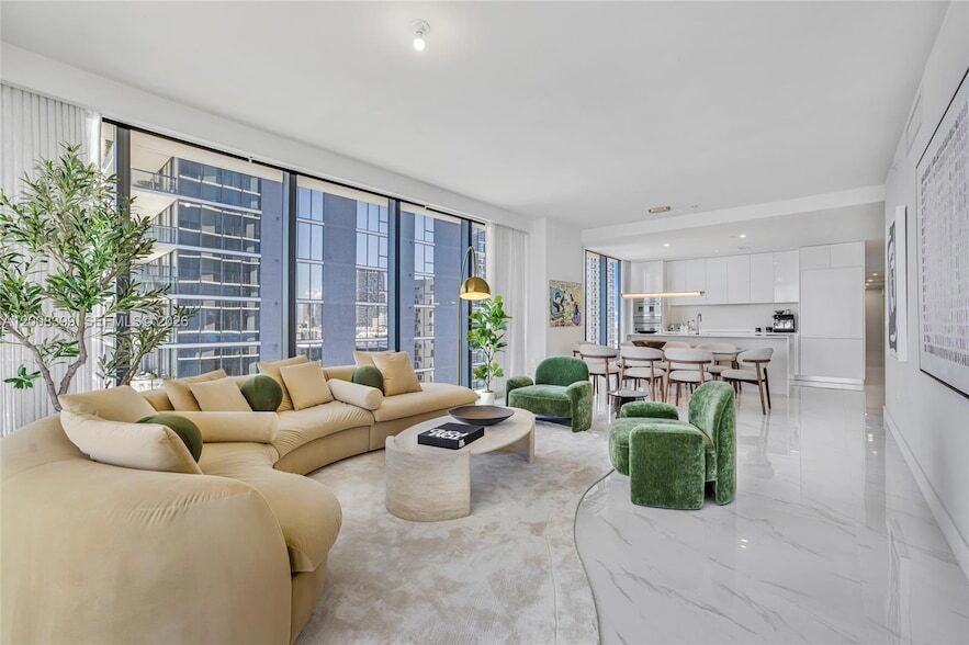 A rare, FULLY FURNISHED, MONTH-to-MONTH 07-line corner showpiece with TWO side-by-side parking spaces. Spanning 2,880 SF, this 4BD, 5.5BA residence features a private elevator entry into a private foyer, staff quarters with a separate entry, plus a flexible den/office that has been transformed into a dedicated family room with a custom, built-in entertainment center. Thoughtful upgrades continue with custom, LED-lit closets that deliver a polished, boutique-hotel finish. Designed for those who want true luxury with true flexibility. Grand, glass-wrapped living spaces flow to a deep terrace for seamless indoor outdoor living. Unobstructed Biscayne Bay and Miami skyline water views deliver a cinematic backdrop from sunrise to sunset. Elevate daily life with 2 acres of exclusive world-class amenities: 3 pools, sauna, steam and massage rooms, game room, gym, children's room, conference center, putting green, tennis/basketball/pickleball courts. Perfectly positioned in the most coveted location of Edgewater s cultural crossroads - walk the waterfront to the opera, ballet, theater, museums, concerts, parks, games and more. Minutes from: Wynwood (2), Midtown (3), Design District (4), Downtown & Brickell (5), Miami Beach (6). Walk to Whole Foods or 2 min to Trader Joe s. Offering short-term and month-to-month leasing.