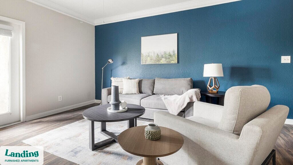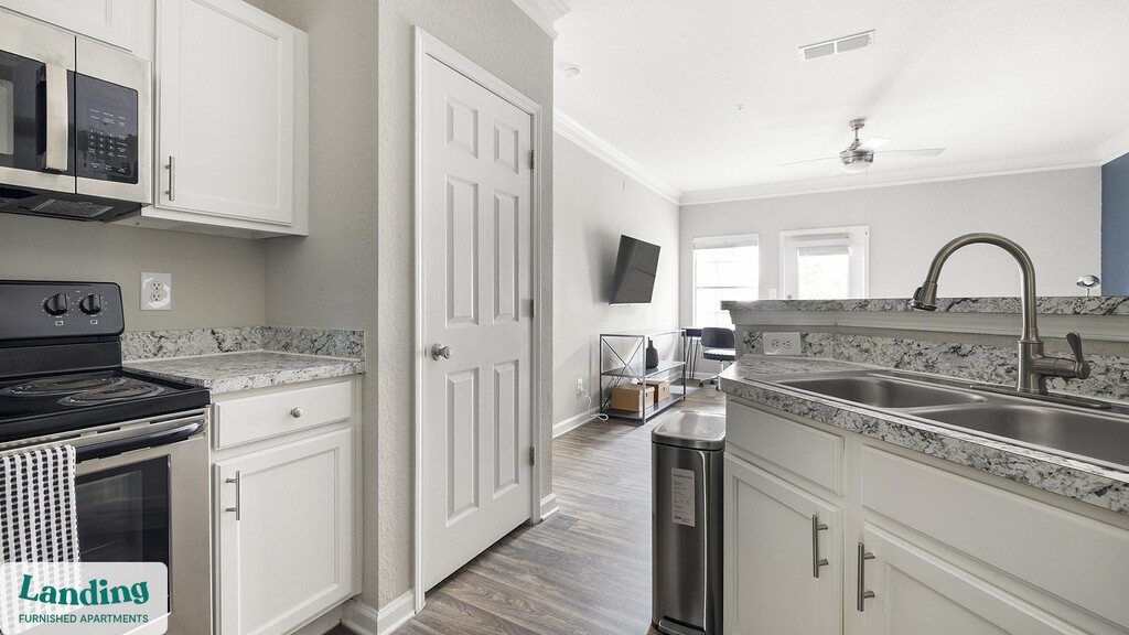 Landing offers flexible lease terms from weeks to months. Please always visit our website or contact us for the latest pricing & availability. Stay longer, save more: 6-Month Minimum base rent: starts at $2490/mo 12-Month Minimum base rent: starts at $2260/mo Landing offers flexible leases across a network of over 35,000 fully-furnished apartments throughout 375+ cities so you can rent on your terms, practically anywhere, and avoid the hassle of paying deposits or application fees. Visit to learn about all the benefits of a Landing membership, see our competitive up-to-date pricing, explore available apartments, take virtual tours, and make reservations online without jumping through traditional rental hoops. Landing's apartments at Elevate Eagles Landing are designed for comfortable, easy living, with the ability to stay as long as you like. Experience living with Landing Every apartment is outfitted with all the modern essentials including: custom-designed furnishings, a fully-equipped kitchen with deluxe stainless steel appliances, a gourmet coffee maker, premium linens, Smart TVs, and incredibly fast, reliable internet for working from home. When you live with Landing, you'll enjoy a hassle-free experience with the added benefit of 24/7 access to our dedicated member experience team. Some of the nitty-gritty: a background check and proof of income are required; we're completely smoke-free; bundled utility packages and pricing vary based on length of stay; pet-friendly options available; listed price reflects a 12-month minimum stay.