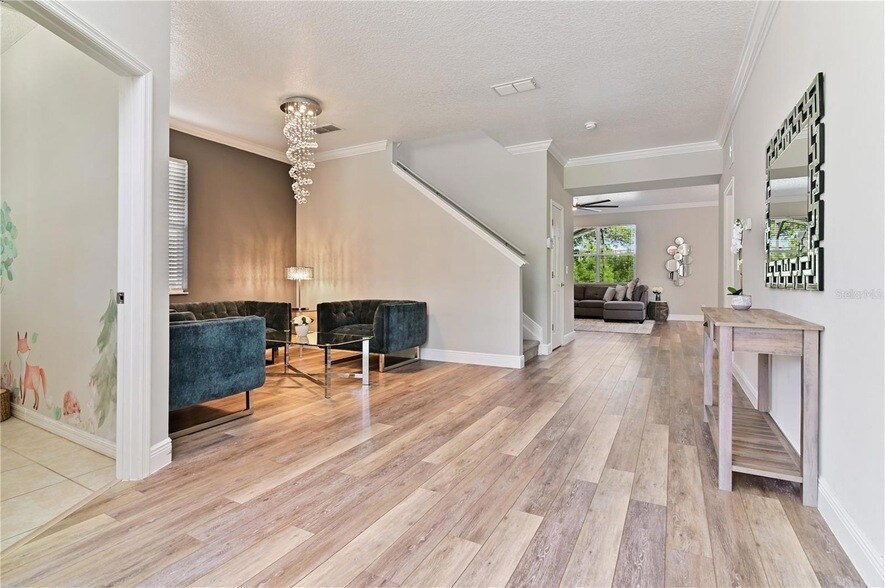 Very spacious 6-bedroom, 4.5-bath home with screened-in pool and patio area. Recently renovated with laminate flooring and fully furnished. Furnishings are optional, so the property is ready for you; just bring your toothbrush or request it to be vacant for your personal items. Private pool/spa with dedicated bathroom, conservation front, so there are no rear neighbors. When you enter the property, you are greeted with a bonus room that has been converted to Bedroom #7, but it would be easy to change it into a study, game room, or an office. The first floor features a formal living and dining room, plus a large family room open to the kitchen and ideal for entertaining. The master bedroom is upstairs, but there is bedroom #6 downstairs, and it can be technically your 2nd master bedroom since it has access to bathroom #3 and has a separate suite door for privacy. Plenty of room for the whole family with an additional 4 bedrooms on the 2nd floor! Located in the desirable area of Four Corners in Davenport. Close to US 27, HWY 192, and minutes from Disney theme parks. Northeast Regional Park is less than half a mile from the community, where you can enjoy six multi-use athletic fields with artificial turf, Basketball courts, Soccer fields, tennis courts, and so much more. The subdivision is located near Disney, major thoroughfares, employment centers, shopping, medical facilities, restaurants, and schools. Come see this gem before it is gone!