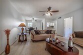Turnkey comfort in popular Lakeside Village! This furnished, converted 2-bed/1.5-bath 55+ condo is on the 2nd floor of Bldg 15 with elevator and laundry on the same floor, steps to the clubhouse & two heated pools. Bright ceramic-tile interior offers an enclosed 2nd bedroom, and a 3-yr-new A/C for year-round ease. Cook in the fully equipped kitchen, then sip coffee on your enclosed patio. Huge walk-in closet + assigned parking. Rent includes water, cable & internet. Active 55+ community with shuffleboard, bocce, putting green & more just bring your suitcase!