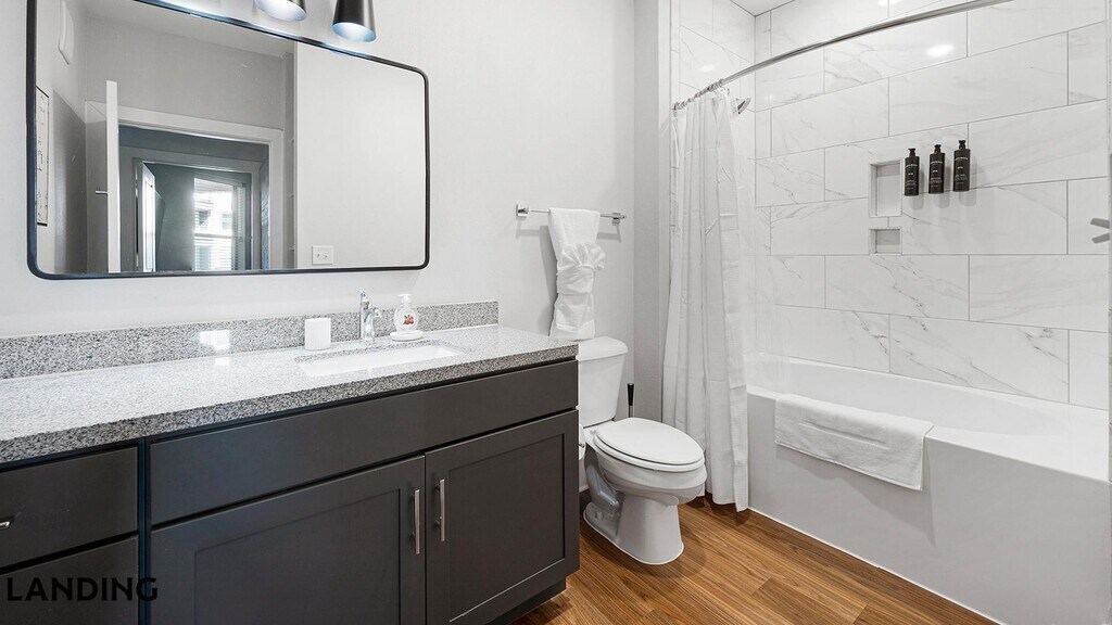 Landing is a top-rated, fully furnished apartment network with thousands of homes across 250+ U.S. cities. With premium amenities, a mobile app to manage your stay, and 24/7 support. Our apartments have everything you need for monthly and longer stays. 6-Month+ Stay base rent: starts at $2255/mo 12-Month+ Stay base rent: starts at $2042/mo Landing's apartments at The Fitzroy Promenade are designed for comfortable, easy living, with the ability to stay as long as you like. All Landing apartments include: - Fast Wi-Fi - Stylish furnishings - Fully-stocked bathroom - Smart TVs - Comfortable bed - Professionally cleaned - Guest support Stay longer for cheaper! The longer you stay, the bigger your discount. Price advertised is for a 12-month stay, including all utilities and fees, and may vary based on availability. We manage multiple units at this property. While all feature a similar style and furnishings, the layout and specific design elements may vary slightly from the photos provided. Some of the nitty-gritty: a background check and proof of income are required; we're completely smoke-free; pet-friendly options are available; parking is subject to availability.