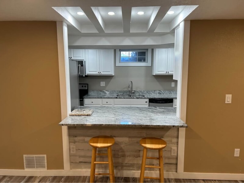 Property Id: 2140185 Bright & open. Remodeled basement apartment with separate outside front entrance with 3 bedrooms, 1 bathroom, large kitchen, pass-thru bar/island, dining area, large living room with built-in desk. Lots of LED lighting & windows in each room (not laundry room). Heat pump. Outside storage shed Low traffic street, nice neighborhood & nice upstairs tenants. Close to schools, hospital, CGCC & Sorosis Park Water, sewer, electricity, wi-fi & garbage included Tenant responsible for mowing lawns weekly & snow removal (porches, steps, sidewalks, driveway & roofs) SHARED WITH UPSTAIRS TENANTS Large fenced backyard, large concrete patio, separate fenced in-ground swimming pool area Applicant minimum qualifications: *Monthly income at least three times monthly rent amount *Good rental references *Good personal references (3) *Good credit history and credit score No smoking, drugs or vaping in apartment or on property. Tenants must be quiet & considerate of other tenants and neighbors.