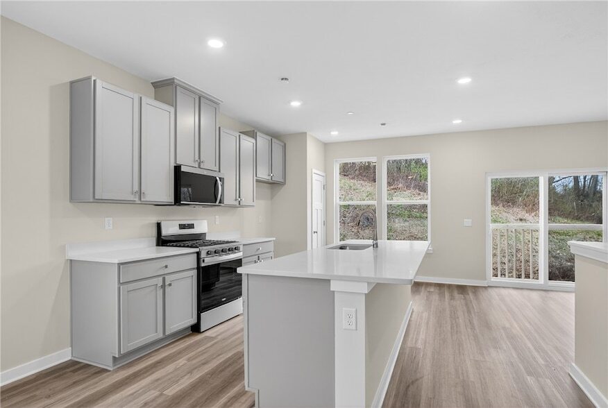 Welcome to this brand-new, never-lived-in home in desirable Collier Township, ideally located just off the Parkway West with quick access to major highways 376, 79, and 22 making commuting to downtown Pittsburgh, Pittsburgh International Airport, and beyond a breeze. You ll also love being just minutes from shopping, dining, and entertainment in the Robinson Town Centre area, as well as outdoor recreation at Settlers Cabin Park. Inside, the home showcases a bright, open floor plan with soaring ceilings and neutral d cor throughout. The stunning kitchen is the heart of the home, featuring white cabinetry, quartz countertops, stainless steel appliances, durable LVP flooring, and a large center island perfect for entertaining or everyday living. The spacious layout includes three generously sized bedrooms, 2.5 baths, and ample storage. The finished lower level offers incredible versatility, ideal for a home office, playroom, or additional living space to suit your needs. Enjoy truly low-maintenance living with an HOA that covers lawn care and provides access to exceptional community amenities, including a pool, clubhouse, fitness center, and more. Move right in and experience the perfect blend of style, convenience, and carefree living in a prime location!